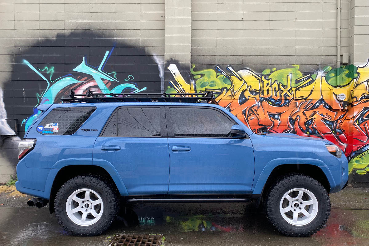When it came down to this choice for our customer @MTNYOTA, he chose to sport some Volk Racing Wheels on both of his vehicles. On his outlander style 2018 TRD Pro 4Runner, is a set of TE37’s in gloss white to maintain a sporty look while exploring the luscious Washington terrain.