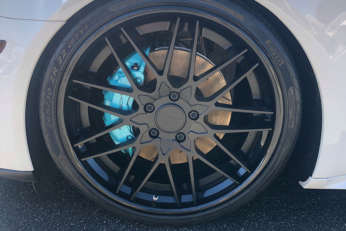 This particular customer has a white 971 Panamera 4S. With the help of one of our performance specialists, they chose a set of Rotiform Forged 3-Piece RSE wheels. These wheels use a unique split nine-spoke design which flows very well with the design of the Panamera, and the Gloss Black/Satin Black finish gives a nice contrast against the white paint. Wrapped around the wheels are sticky Pirelli P-Zero Nero GT tires.