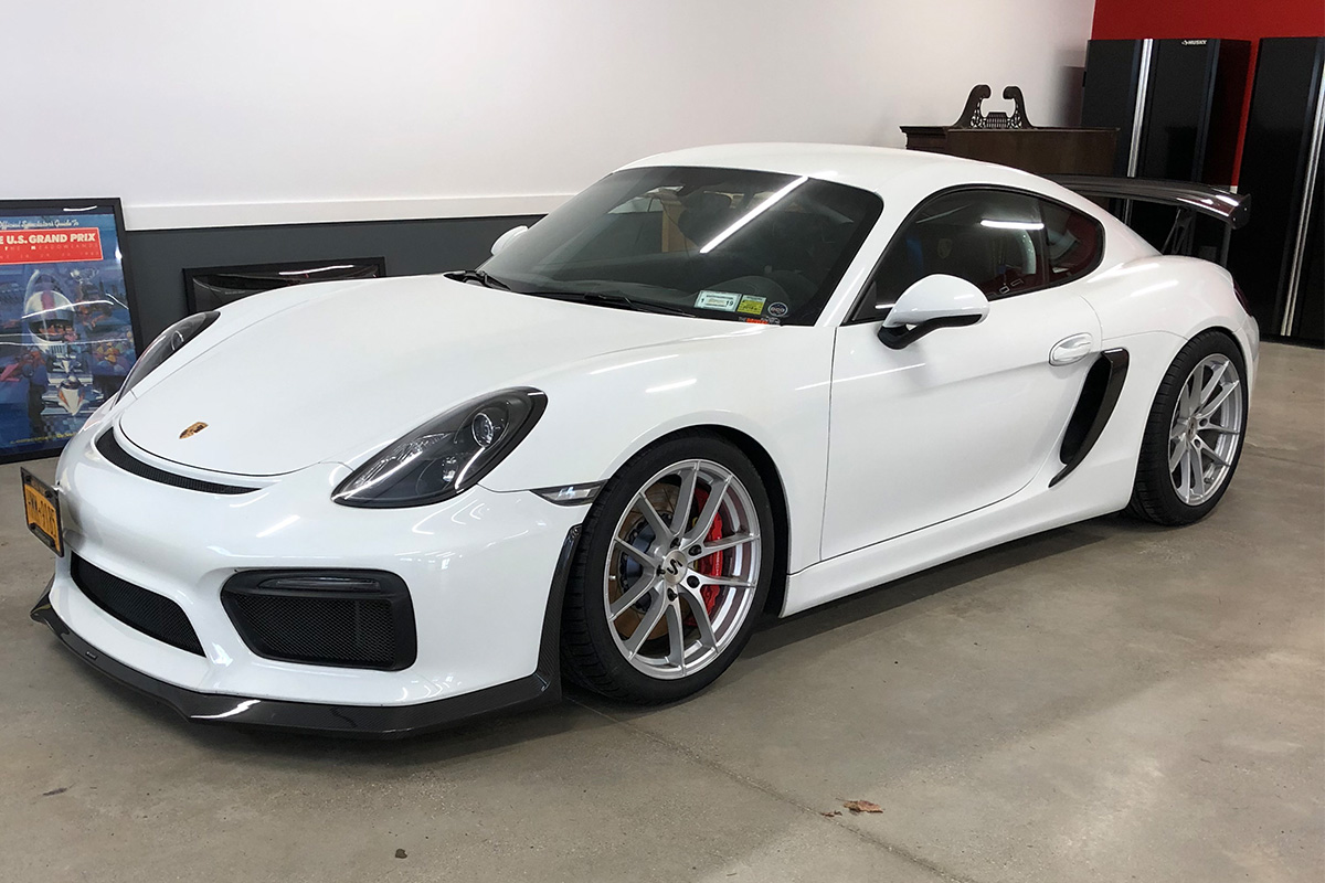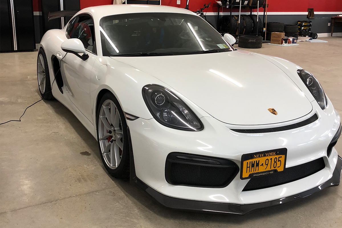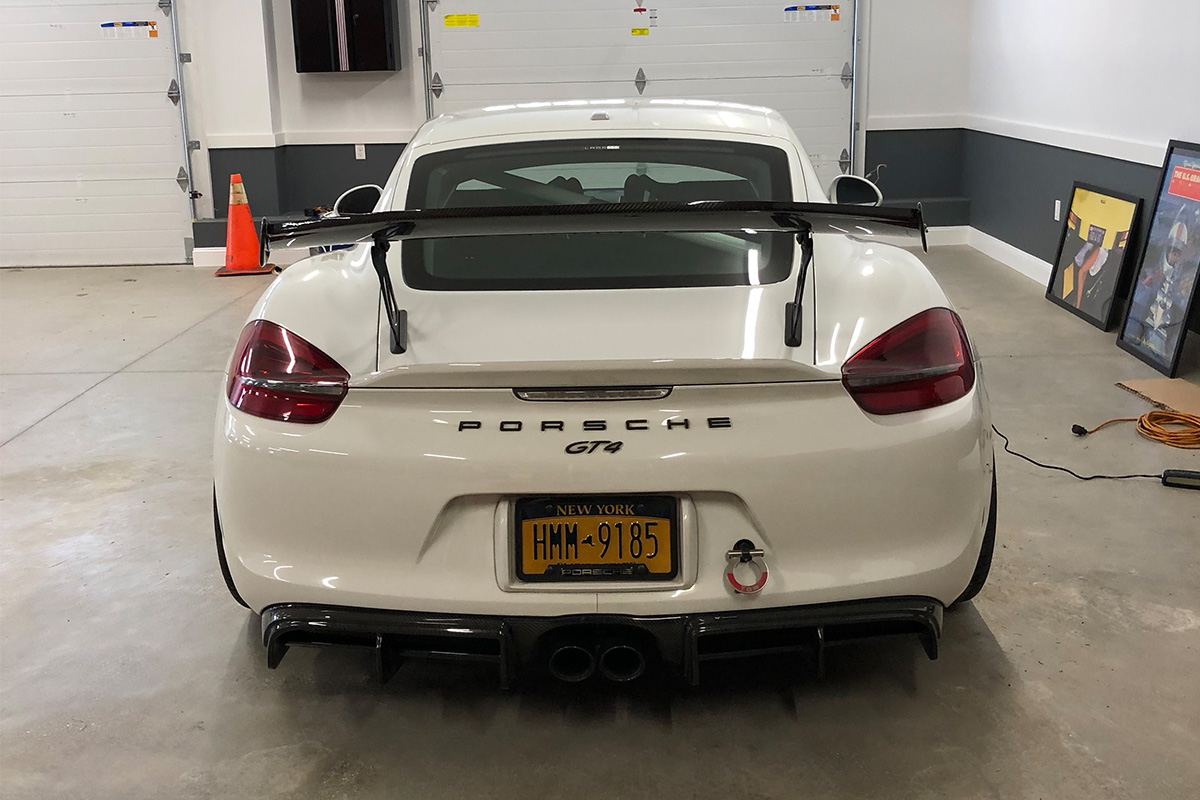 Although the Porsche 911 will forever be Porsche’s bread-and-butter, many enthusiasts love the Cayman platform for its small proportions, lightweight chassis, better weight distribution compared to the 911, etc. When Porsche released the GT4 version of the Cayman, enthusiasts over the world fell in love. For the first time ever, Porsche created a Cayman that legitimately competed with the 911 and in many categories was actually better. Being such an outstanding car, it’s no surprise enthusiasts started buying them and modding them. Just recently a customer of ours picked up some aero parts that really transform the look of the GT4 and also provide more downforce, resulting in theoretically faster lap times.