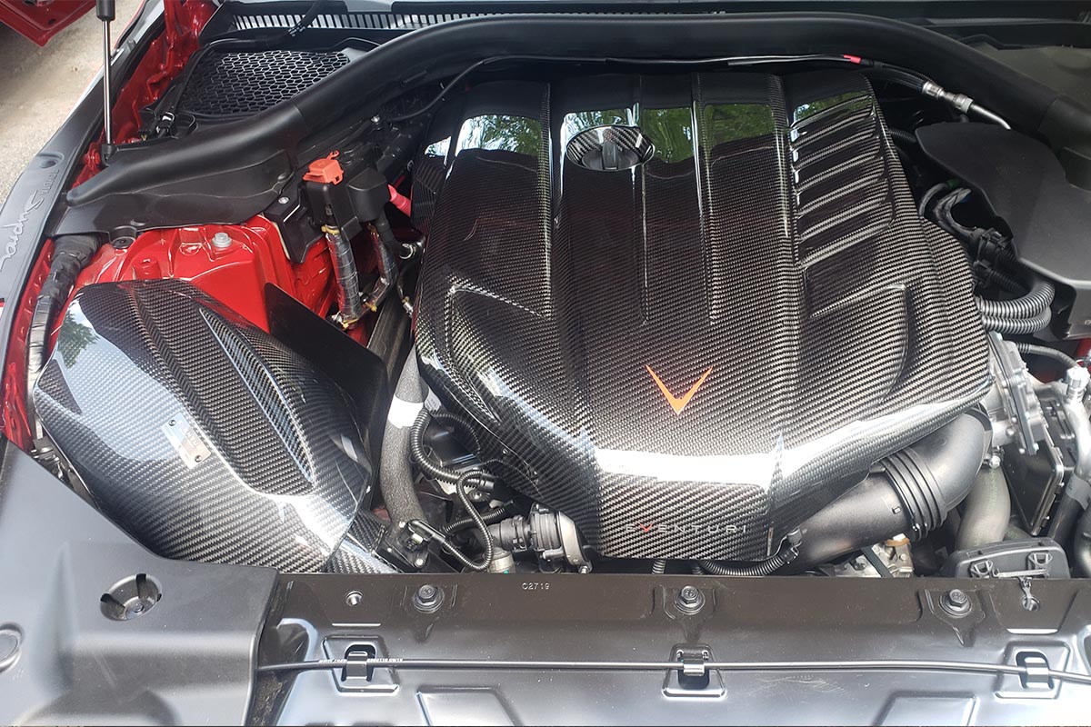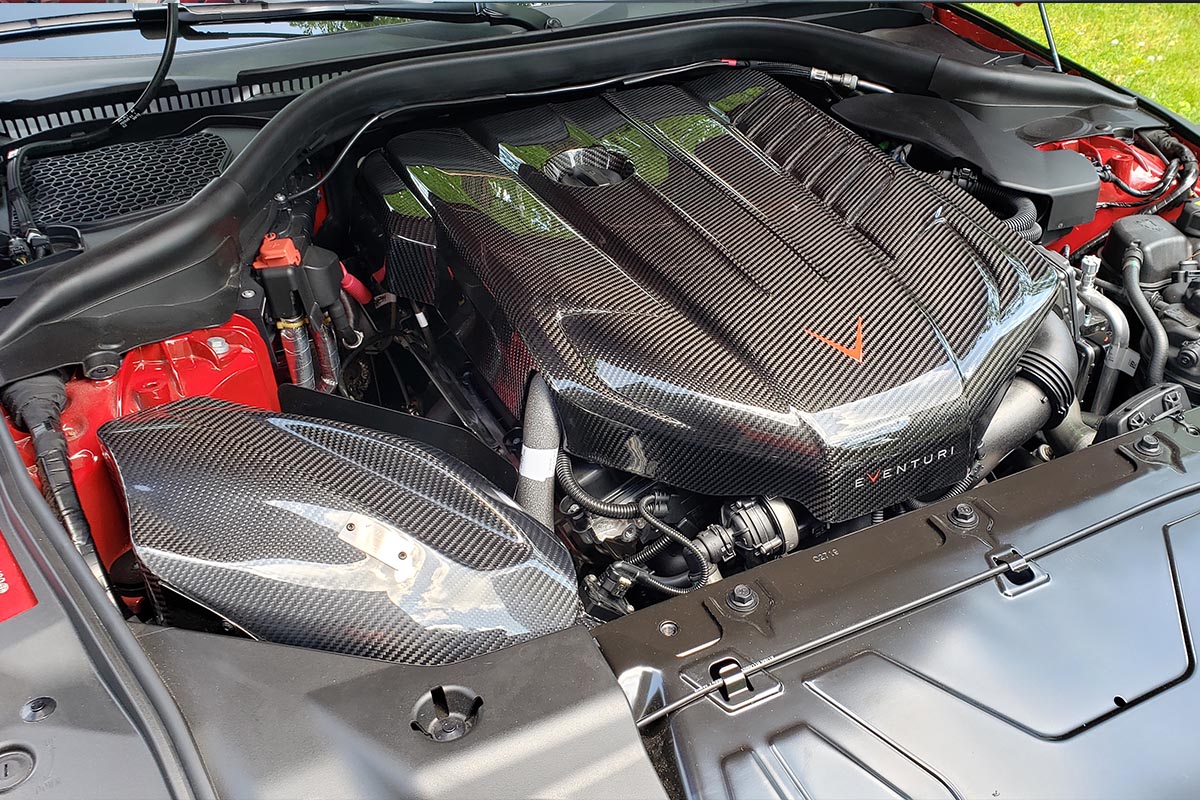 To increase performance, a pair of Armytrix high-flow performance downpipes, HKS stainless steel dual-tip exhaust, Eventuri carbon fiber intake, and VR Tuned ECU flash were installed. This improved air-flow all around with the intake and exhaust. Maximizing the efficiency of the turbocharger and throttle response was achieved with the ECU tune.