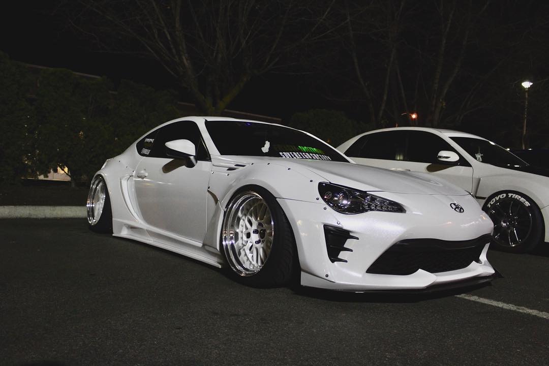 The Rallybacker kit is roughly similar in styling to a package like Rocketbunny but at a much lower price. This lower price makes it significantly more attractive than many other widebody kits. After having the body kit painted and installing it, our customer sent the photos and the final product is nothing short of stunning. Combined with a killer set of wheels, air suspension, and other goodies, his GT-86 is genuinely one-of-a-kind. Check out some of the photos below and be sure also to check out his Instagram: @Hollis.86