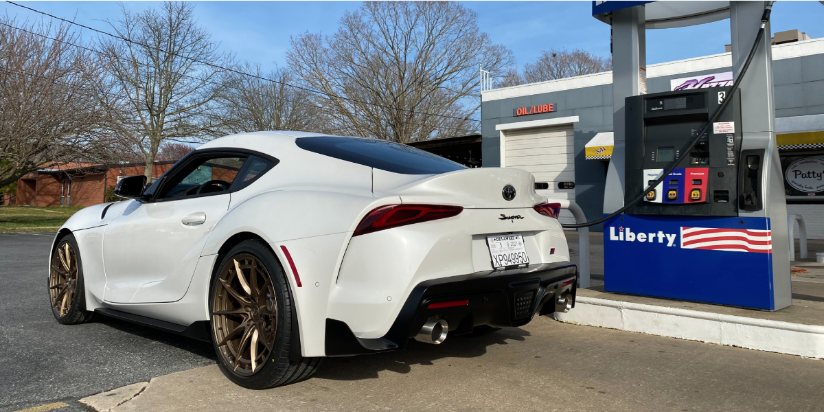 One of the most popular mods to do is to swap out the stock wheels with a fresh set of shoes that will really make a statement, especially in a striking finish. Such was done with the beautiful Toyota A90 Supra you see in this post. Our customer opted for our very own VR Forged D03-RC wheels in a stunning Satin Bronze finish to contrast the clean white exterior. These 20-inch wheels boast a sharp and timeless 10-spoke design that has just the right amount of pizzazz without being over the top or taking away from the Supra’s natural DNA.
