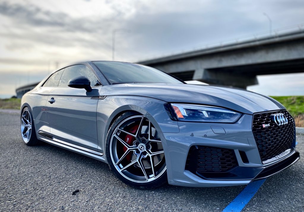 Experience the remarkable enhancement provided by the HRE FF11 wheels, featuring a sleek liquid metal finish and a 20×10.5 +35 size, which perfectly complement the aggressive stance of the Audi RS5. Explore more inspiring customer builds and performance upgrades from Vivid Racing, where passion meets precision.