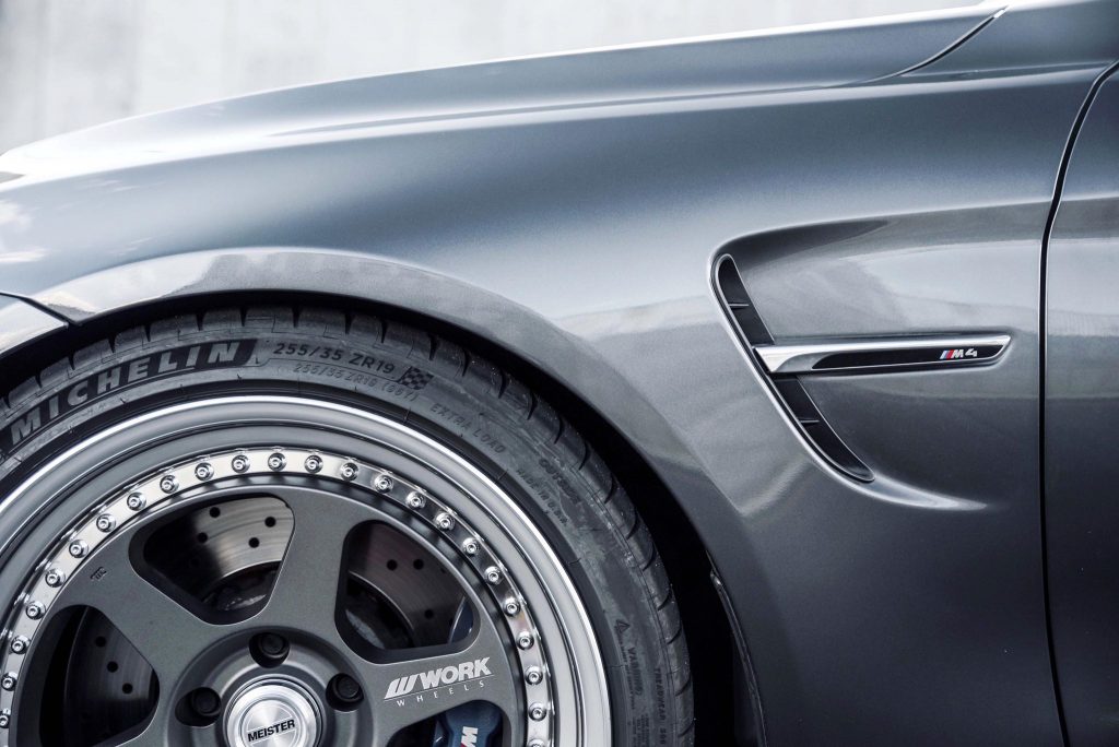 - Wheels: Work Wheels – Meister L1 3P -19×9.5 +15 (L Disk) (Work Fitment) -19×11 +31 (A Disk) (Work Fitment) -Matte Gunmetal Center -Polished / Anodized Barrel