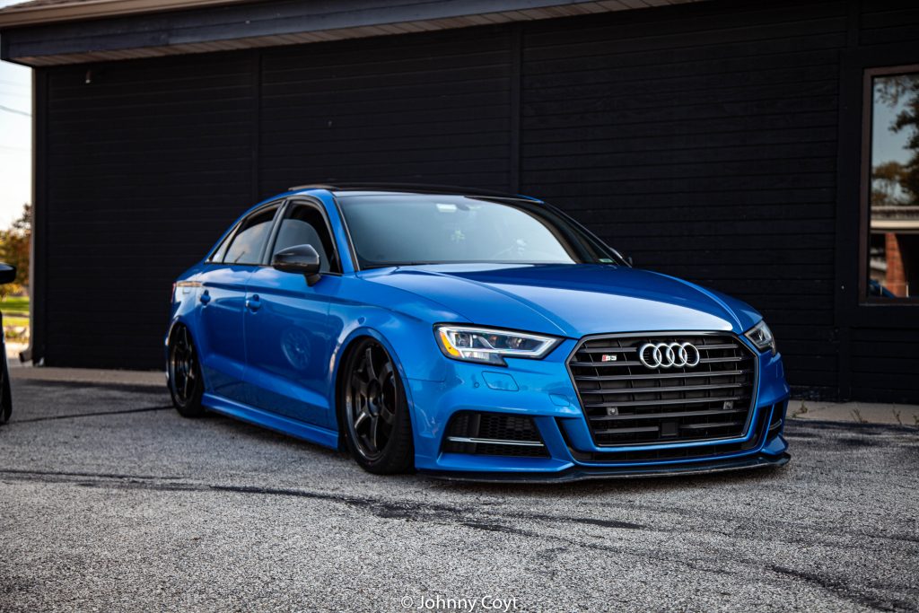 My name is Brandon Shimkus. I am 21 years old attending Purdue university for an engineering and innovation degree. I’ve had this car for 2 years and it’s slowly becoming a monster! I make 425whp and 435wtp in my 2017 Audi S3 Prestige. The car is ara blue and the wheels are diamond gunmetal.