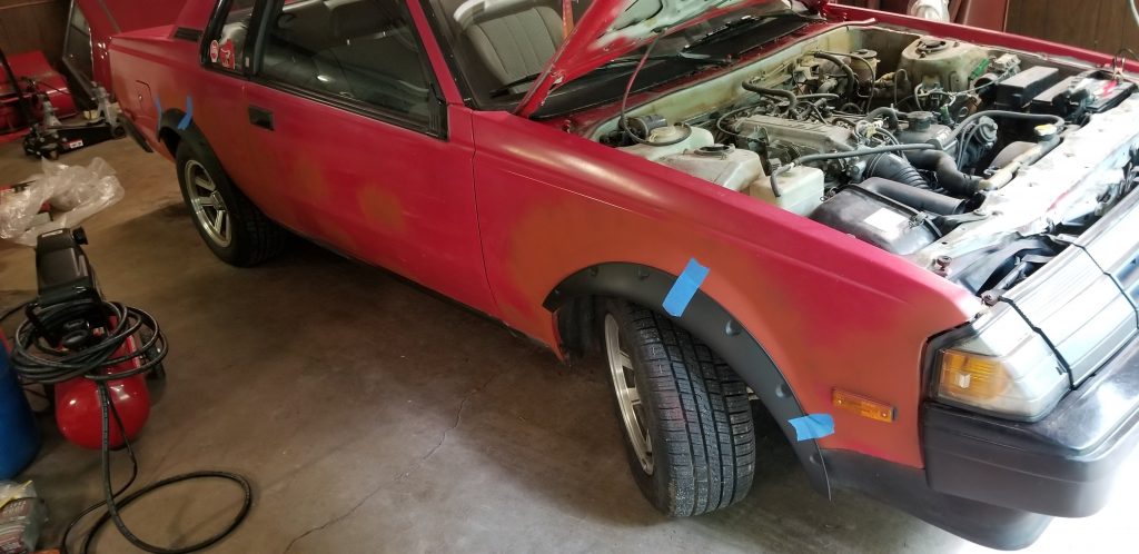 - Exterior: rx7 rear bumper, ebay rust hiders, 1982 celica cornerlamps, Spray paint red
