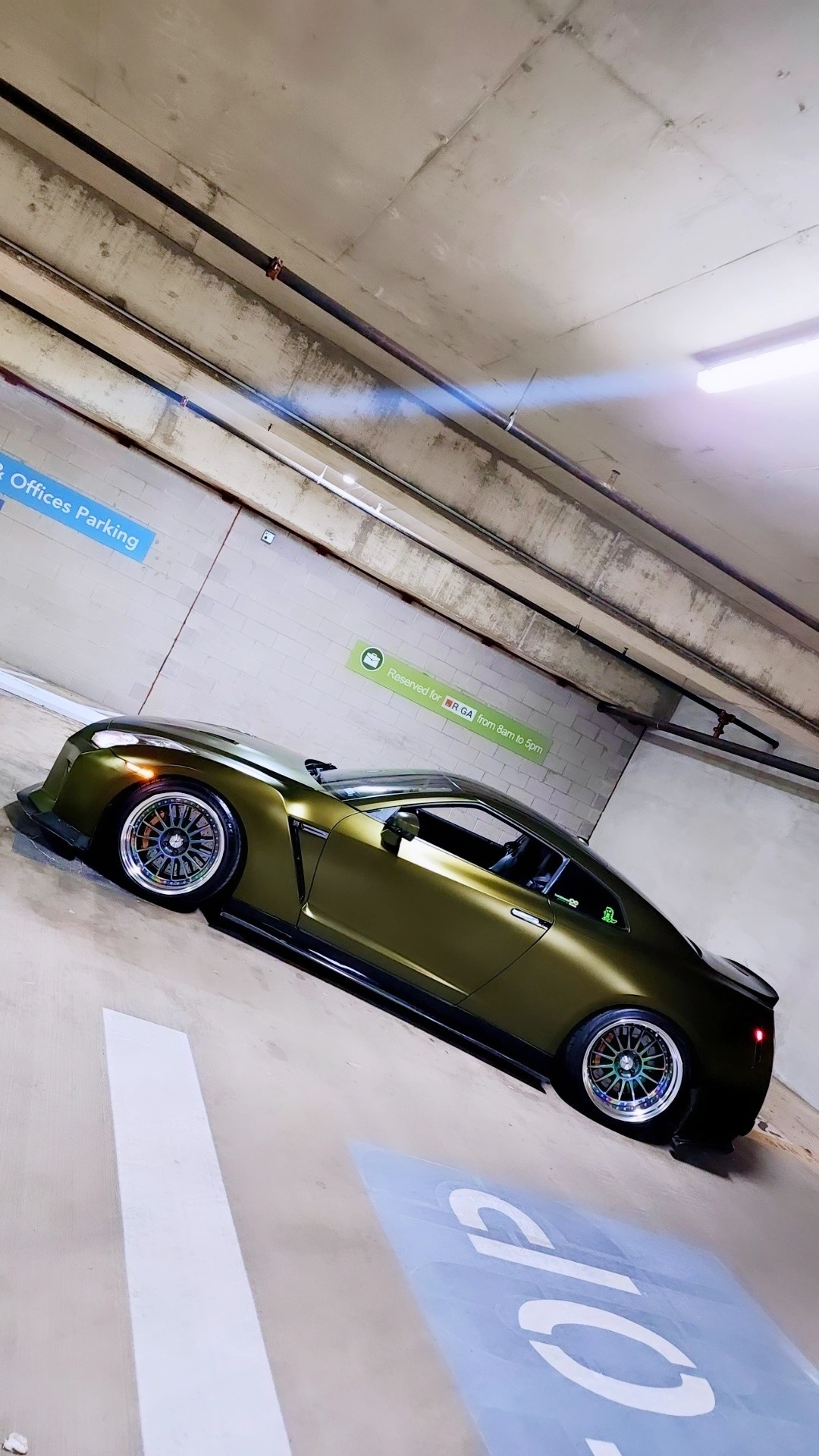 My 2010 GT-R is one of a kind. While being a 2010 shell, its interior is completely from a 2015 GTR, along with the motor and trans, both built (pistons, rods & shep one-k trans). Waiting on parts from overseas is never fun, but worthwhile. The wrap is satin hope green and the SSRs are custom TF1s in spectrum silver, gold bolts.