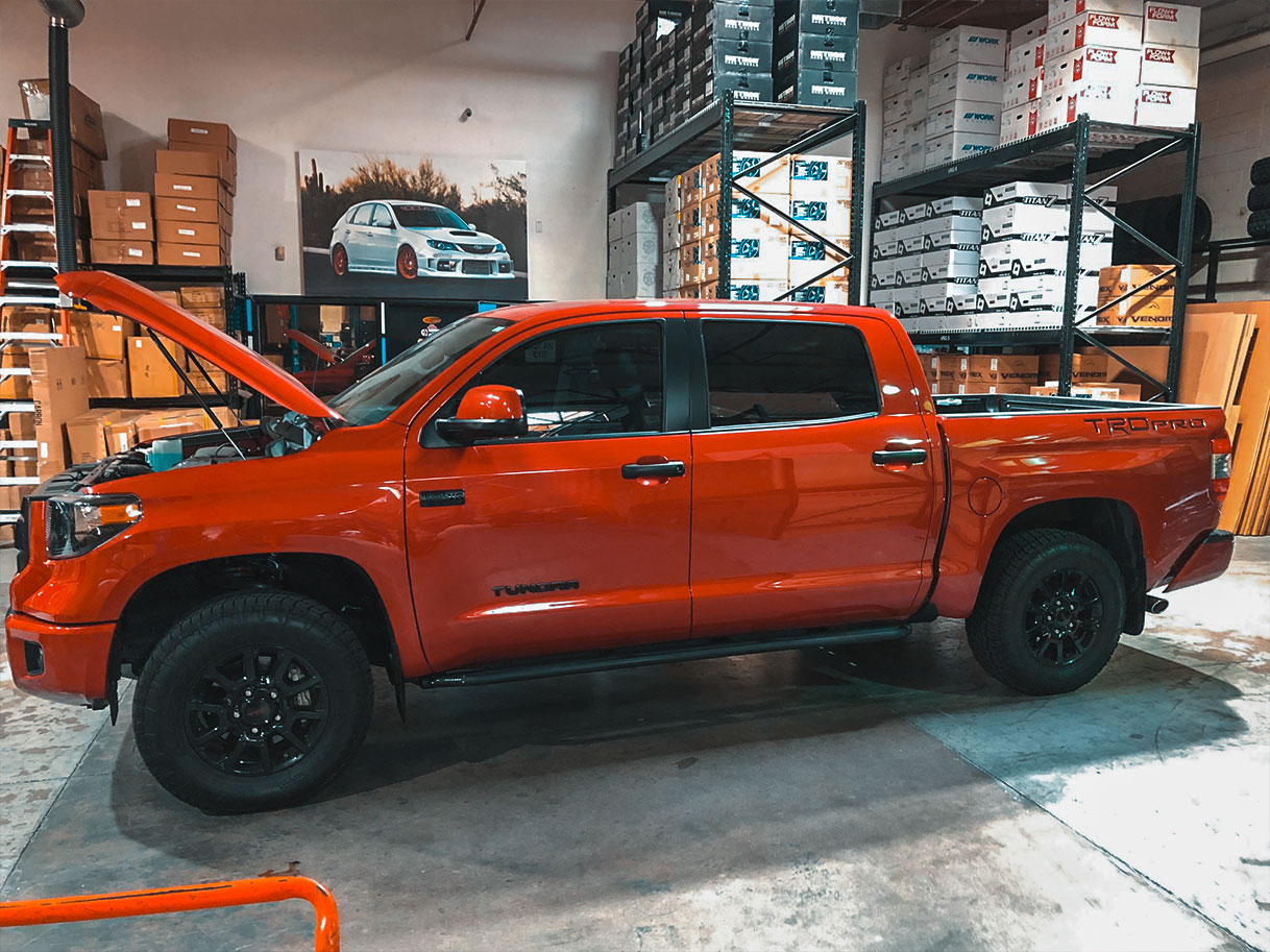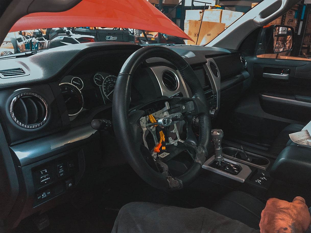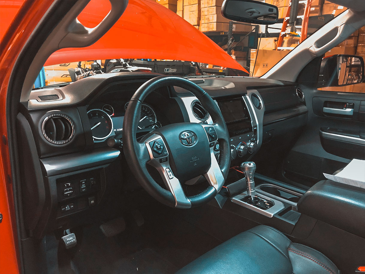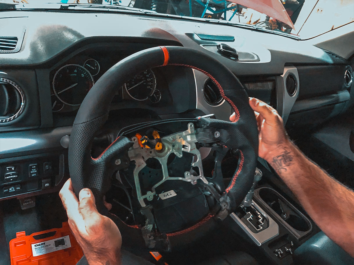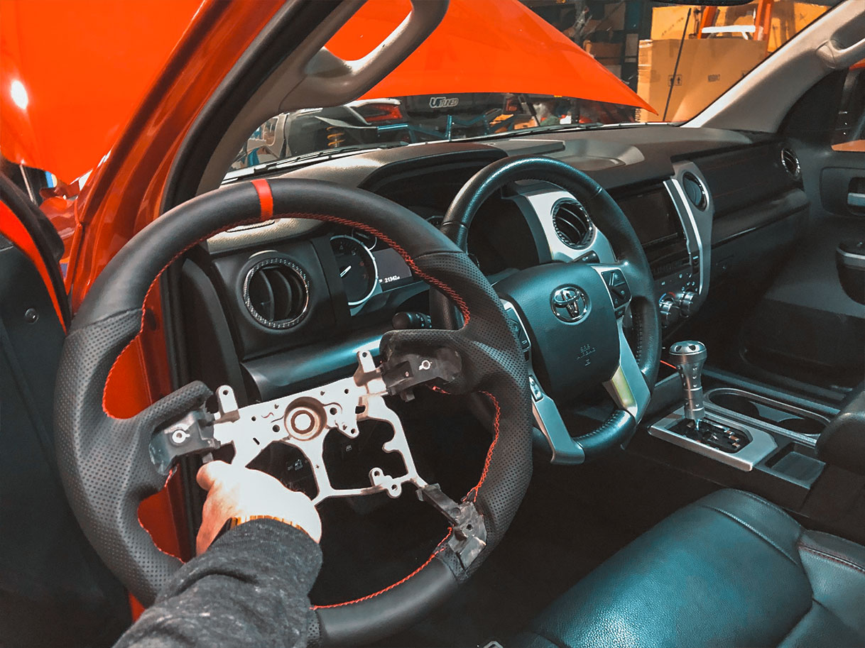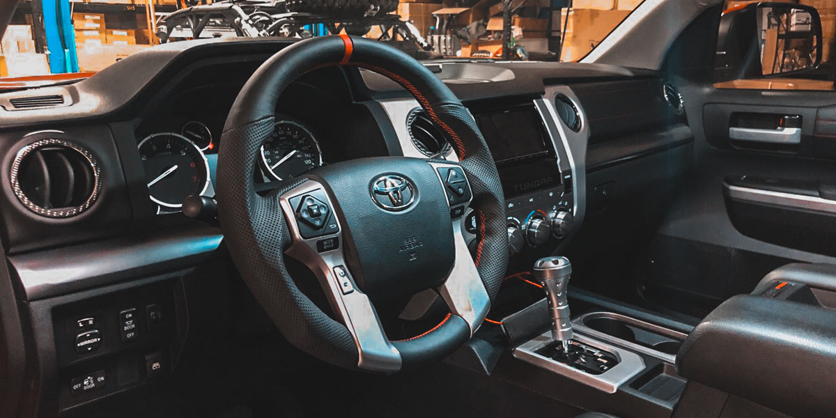 The steering wheel is the component you use the most while driving. Every single time you drive, you’re gripping and sliding your hands all over it. The thing is, most steering wheels are boring and aren’t particularly comfortable to hold. You might not need some crazy flat-bottom steering wheel in your truck, but something more comfortable than the stock steering wheel would make driving that much better. This is where we come in with our new Tundra/Tacoma/4Runner steering wheels, which is exactly what we installed in this customer’s Tundra TRD Pro.