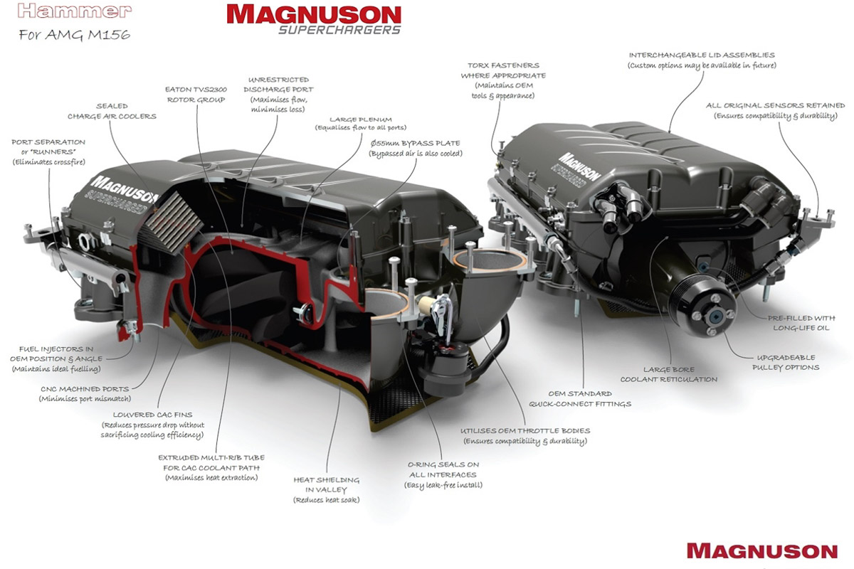 With more and more Mercedes AMG vehicles moving towards turbocharged engines, the M156 6.2L has become a legend. AMG vehicles equipped with this engine range from 475 to around 500 horsepower which most people would say is plenty, but enthusiasts always want more. If you want a lot more out of your M156 engine, boost is the answer and Magnuson has been the go-to for many AMG owners. If you haven’t boosted your M156, now is the time because Magnuson is having a massive sale on this supercharger, taking it from $8995 down to $6995 which is a savings of $2,000.
