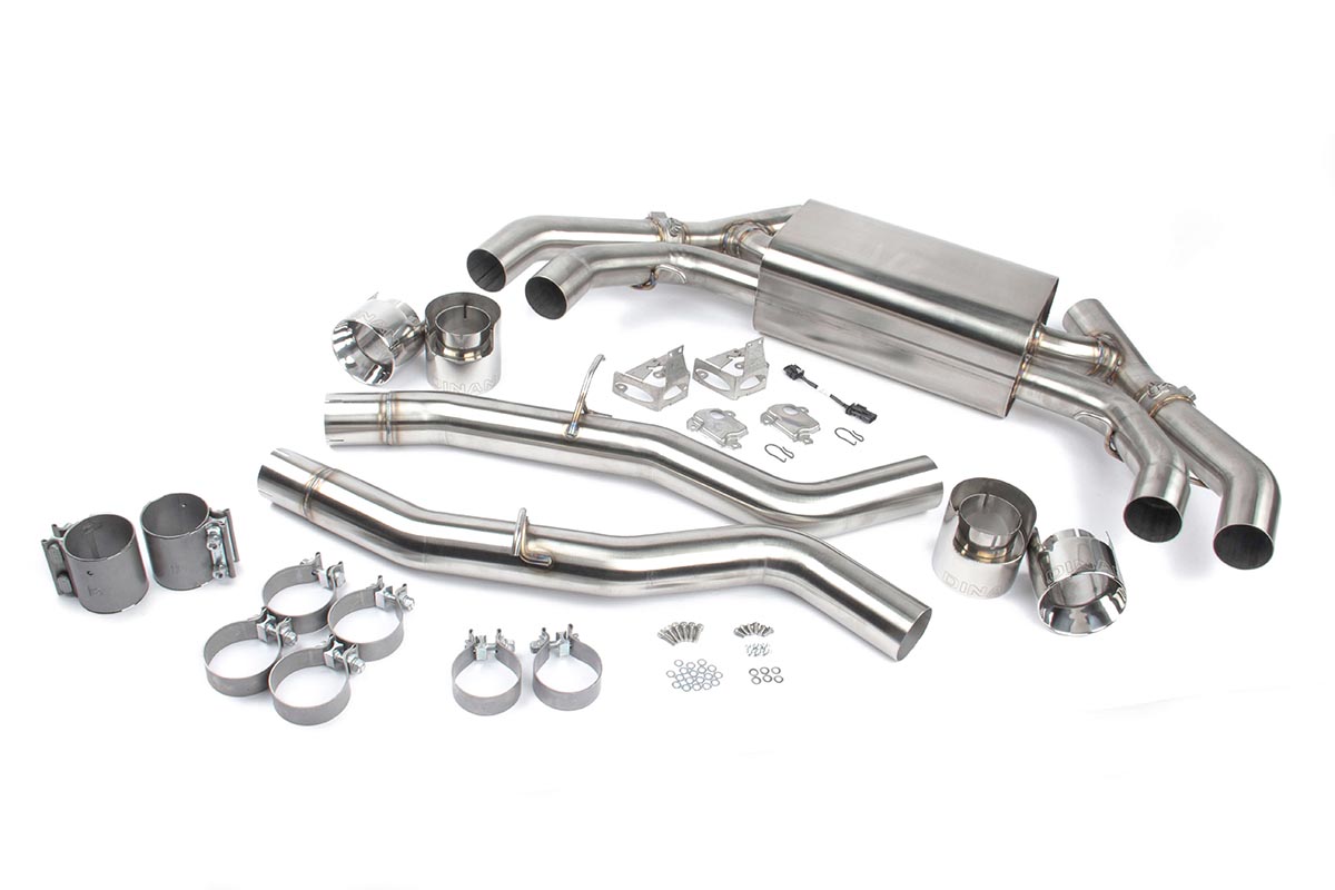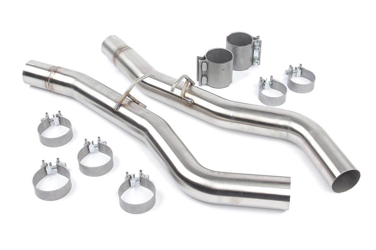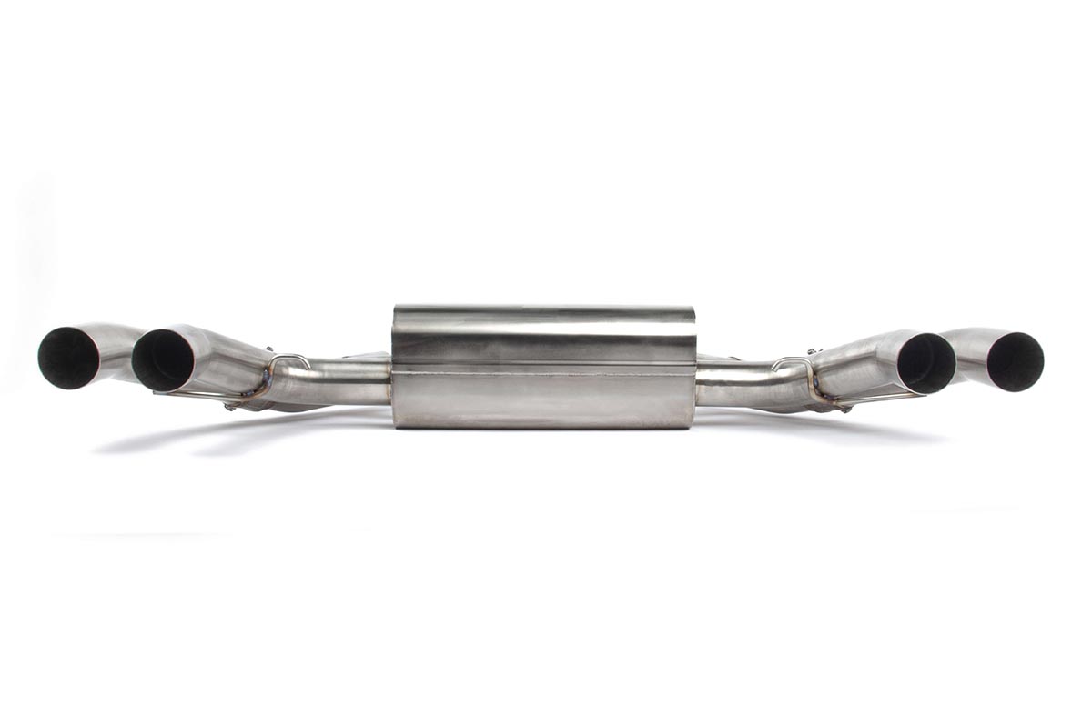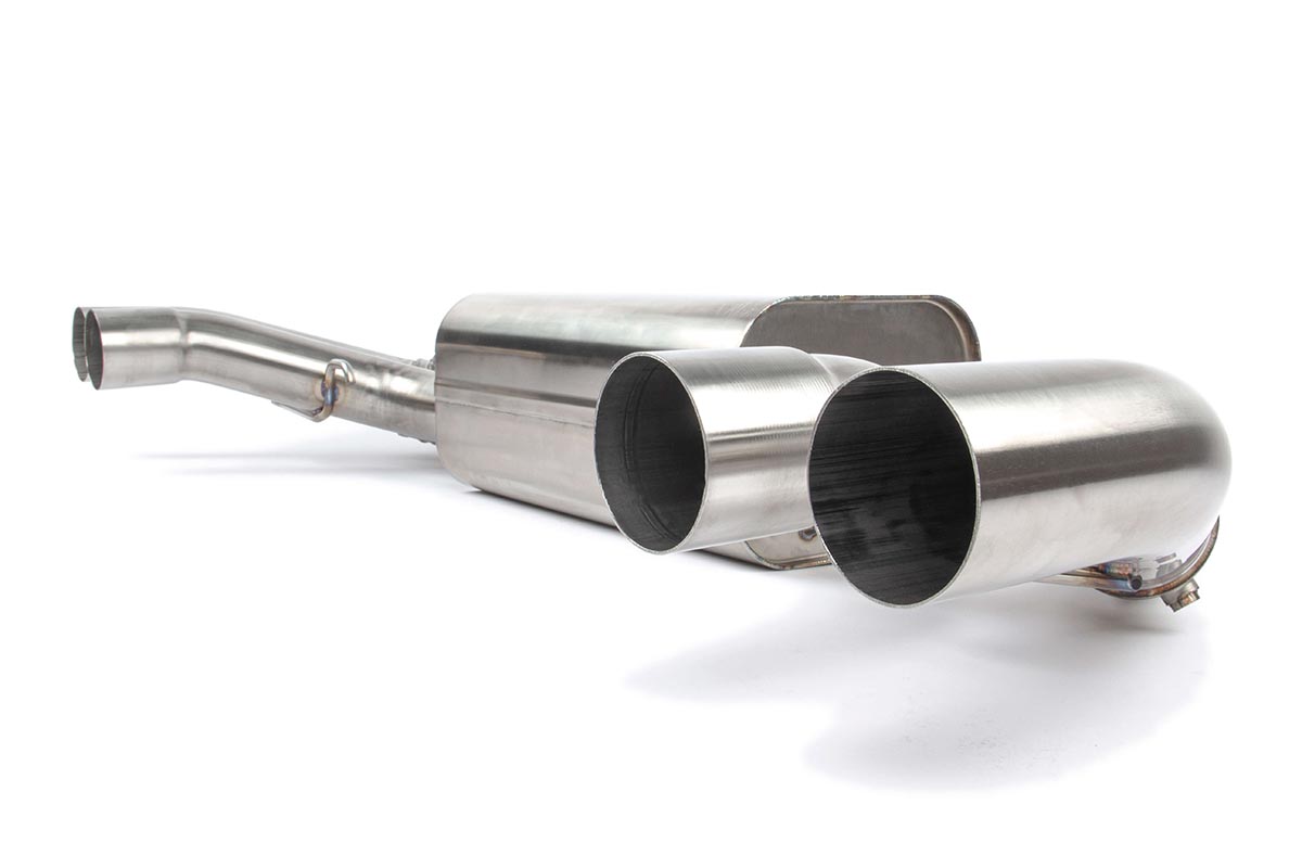 Dinan has developed a valved axle-back exhaust system to provide owners with on-the-fly attenuation. The 76mm diameter tubing offers a free-flowing design which significantly reduces restriction. Upon opening of the valves, the exhaust flow bypasses the muffler completely to permit maximum flow through the system.