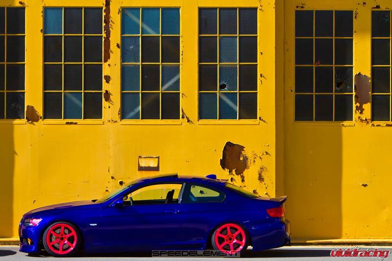 Speed Element hooked up this E92 BMW with some pink Gram Lights 57D wheels. These pictures were so dope we had to share them. The 19 inch flush setup gives the 5×120 bolt pattern plenty of clearance for a big brake kit. Common setups are a 19×8.5 or 19×9 and a 19×10 on the E92 chassis. Vivid Racing carries a large variety of wheels from Gram Lights Here.