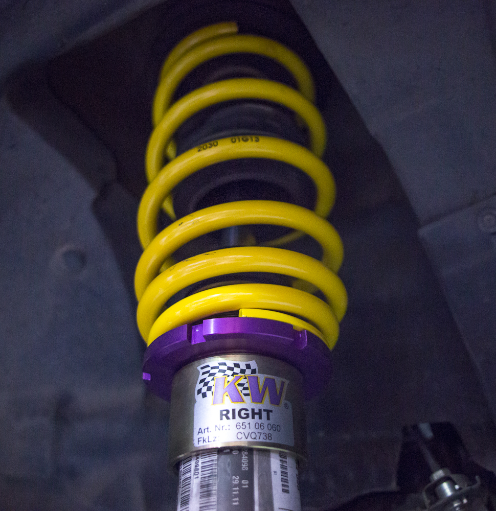 E92 M3 Coilovers are one of the first suspension modifications you should do to your BMW M3. Coilovers consist of a spring and shock absorber mounted together. Typical coilovers have adjustment for ride height as well as dampening or separate rebound and compression. A good coilovers is valved according to the cars weight, the spring rate used, etc so it rides good on the street and track. A coilover that has a ton of dampening clicks does not mean it is better than the coilover with only 9 clicks or seperate adjustments for rebound and compression. The internal workings of a coilover are important too. Having a monotube shock compared to a twin tube shock will give you many advantages. With coilovers, the old addage of “you get what you pay for” is definitely true.;