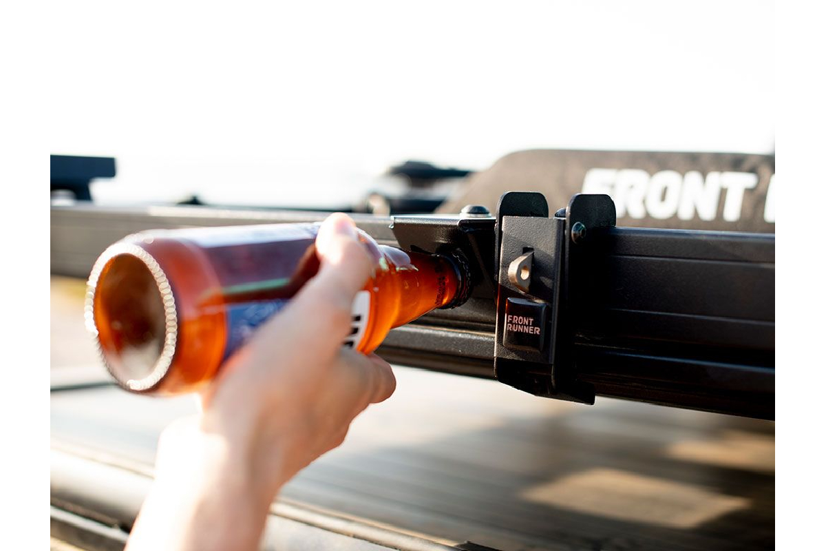 The name says it all with this product. Turn your entire vehicle into a handy way to open your beers with the Front Runner Rack Mounted Bottle Opener. This product lets you fit a bottle opener to your truck’s rack for whenever you need to crack open a cold one. It is made with black powder-coated stainless steel for added protection against the elements. So, not only is this incredibly convenient, but also highly durable to last through all of your Overland adventures. The Front Runner Rack Mounted Bottle Opener can be installed anywhere along the sides of the Front Runner Slimline II Roof Rack Tray by simply sliding the opener into the T-slot and fastening the bolt.