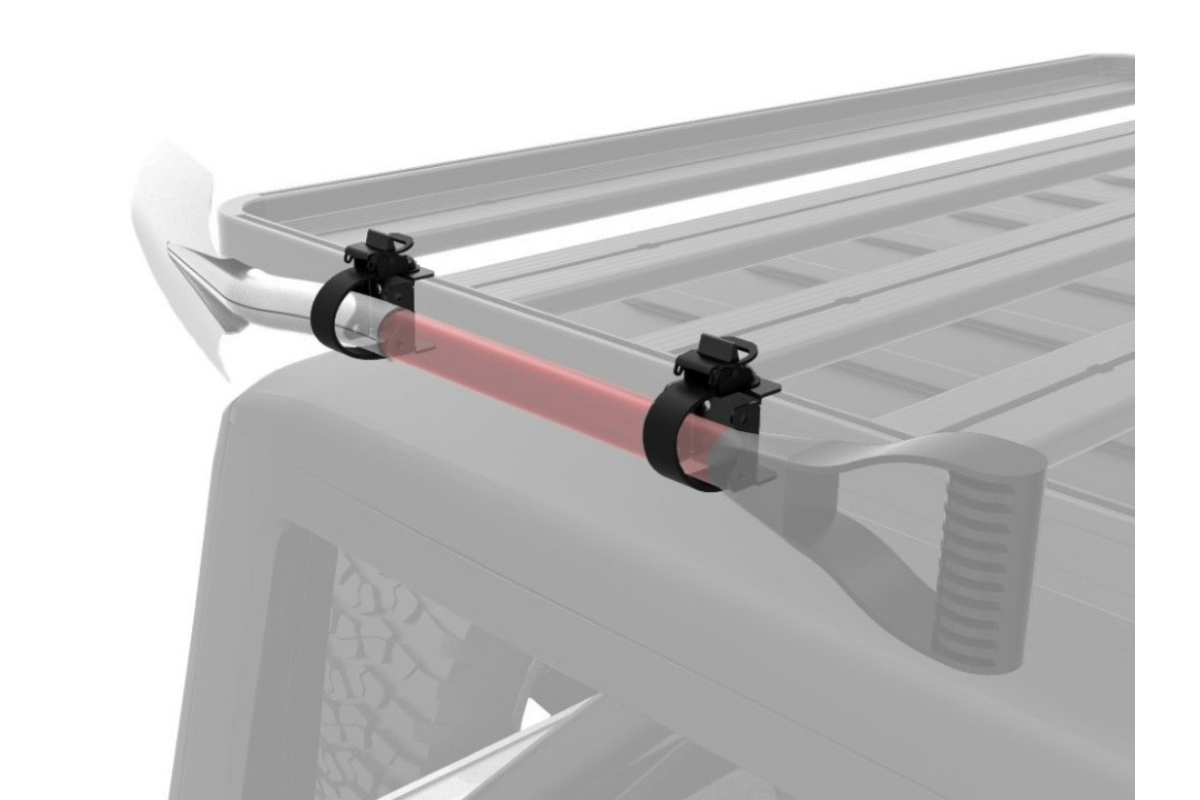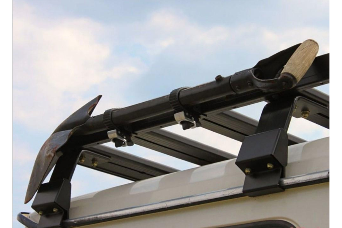 The Front Runner Roof Rack Ratcheting Spade Shovel Mount can accommodate most shovel sizes and is adjustable to fit gear that is ½ inch (12mm) to 2 inches (50mm) in diameter. It lets you mount a spade, shovel, or similar gear up and out of sight on the side of a Front Runner Roof Rack. It’s the perfect, off-road-tough storage solution for this type of equipment and can even fit canoe paddles! The ratcheting straps adjust to fit various circumferences and lock tight to the sides of the roof rack for a rattle-free operation and solid transportation. The quick-release latches allow the gear you mount to be easily removed. The brackets install along the Slimline II Roof Rack Tray side rails in just minutes. There is no drilling required for installation. This kit comes with the necessary hardware to mount to the original Front Runner Slimline Roof Rack.
