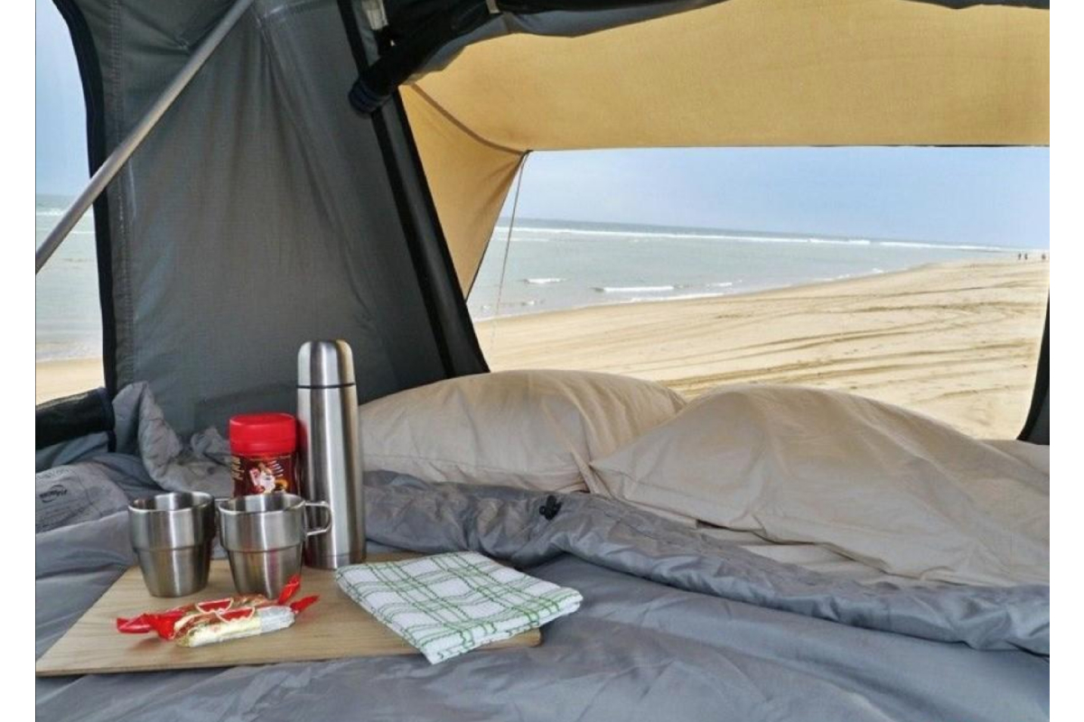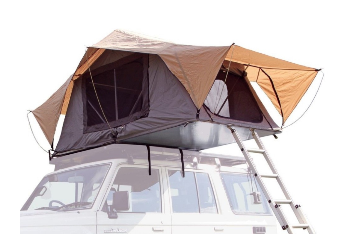 The Front Runner Roof Top Tent is the lowest profile rooftop tent on the market and weighs just 43kg (95 lbs)! It measures 1.3m (4.2’) wide and 2.4m (7.8’) long when unfolded. The super-low 330mm (13”) profile (excluding the ladder) helps to reduce wind resistance while on the road and lowers the vehicle’s total height. This product mounts to the top of your Front Runner Roof Rack for quick, convenient, and comfortable shelter wherever you room. It opens in one smooth motion for an instant bedroom that sleeps two-plus persons comfortably. It already includes a high-density foam mattress, so all you need to do is add sleeping bags and pillows. The tent body is constructed of water-repellent, durable 260g poly-cotton ripstop fabric. Skylight vent windows can be unzipped for fresh air or sealed to trap heat and seal out the elements. Plus, a durable, heavy-duty PVC-coated 650g nylon cover protects your tent while stowed away and in transit.