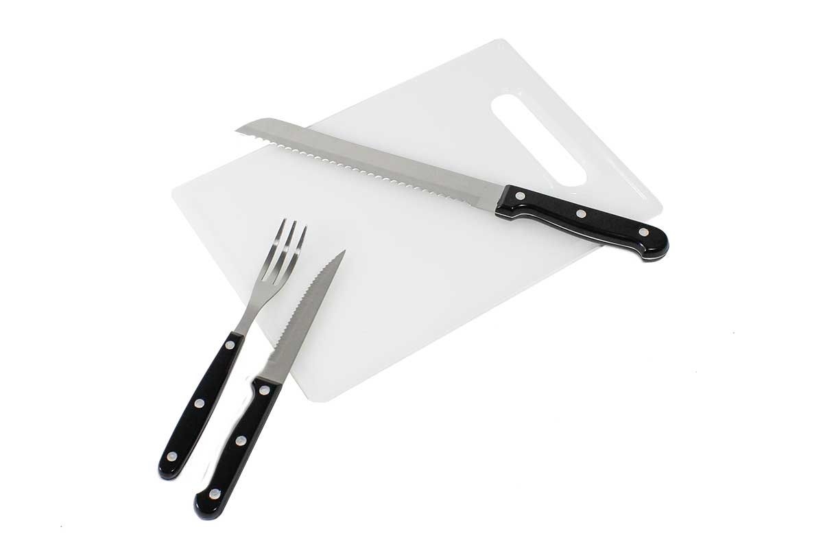 These are not your typical cheap, “throwaway” camp utensils that are flimsy and easy to break. The Front Runner Camp Kitchen Utensil Set is a complete package that comes with 4 serrated knives; 4 steak forks; 4 dessert spoons; 4 teaspoons; 1 chopping board; 1 paring knife; 1 bread knife; 1 carving knife; 1 serving spoon; 1 spatula; 1 BBQ/campfire fork; and 1 bottle opener and corkscrew. The composite handles on these utensils offer a comfortable and weighted grip. The entire kit fits into a custom tool-style roll with a flap, adjustable straps and buckles, and carrying handles. This utensil set also features loops with carabiners so that the opened roll and utensils can be hung for more convenient access.