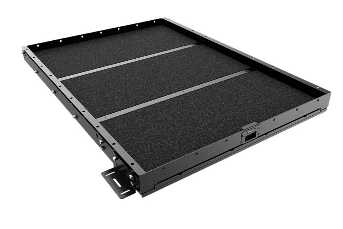 With the Front Runner Load Bed Cargo Slide, you can say goodbye to crawling into the back of your truck every time you need to reach your gear. Removing your tools, equipment, and boxes has never been easier, faster, and safer! Create easily accessible storage space in your vehicle for luggage, gear, tools, coolers, and more. The “hold” open feature prevents the slide from closing when on uneven surfaces and the “push to close” dual latching lock securely keeps the unit closed and rattle-free. The “flat drawer” contains multiple tie-down points and two cargo attachment channels for securing gear with Stratchits or other style straps. This 1.5m extendable cargo slide fits in various pick-up truck beds and other vehicles as a universal cargo solution. It’s engineered to be incredibly tough to stand up to the elements and perform well in both on- and off-road conditions. And the load rating is a whopping 551.2 pounds (250kg).