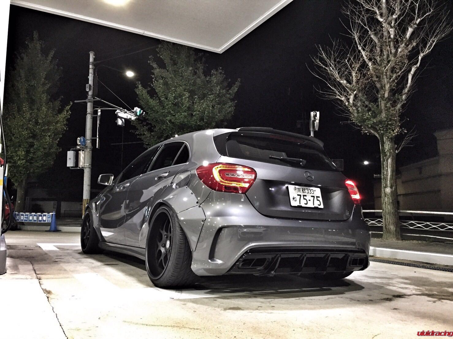 Fairy Design of Japan has quite the unique selection of aerodynamic parts for various vehicles. One kit that has made them well known and we also used on our Project Car is for the Mercedes CLA45 and CLA250. The transformation of how the car looked was how it should have been done from the factory. Going from 8 inch wide wheels to 10 inch wide up front and 11 inch wide in the rear gave the Mercedes CLA45 a much more aggressive look. Where the CLA was new to the USA, the A250 and A45 is available all over the world and a huge seller in Europe, South America, and Asia. Fairy Design has taken the same styling and developed this widebody fender flare kit for Mercedes’ hot hatch car. The kit includes a 5 piece front and rear fender flare kit. Finished in black gel coat, the FRP parts are extremely high quality. Fitting to your vehicle requires trimming of your stock fenders as we have documented here. If you have patience and take your time, the end result will be amazing! Check out these photos of the Fairy Design Mercedes A45 A250 Kit below. This kit is INSTOCK and you can shop Fairy Design Parts Here.