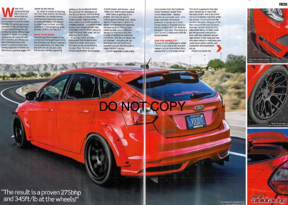 The Ford Focus is the car to have outside of the USA for tuners and enthusiasts. Everything from the older Cosworth Escorts to the new RS400 and more. The Focus ST that came to the states definitely changed my own perspective of Ford and brought many hot hatch fans over to the blue oval side. Fast Ford UK is a very popular magazine in the United Kingdom and Vivid Racing was fortunate enough to be included in the July 2014 issue. Check out the issue screenshots below and view our full Focus ST Gallery Here. You can also shop all Ford Focus ST Parts Here and view Fast Ford UK’s site here.