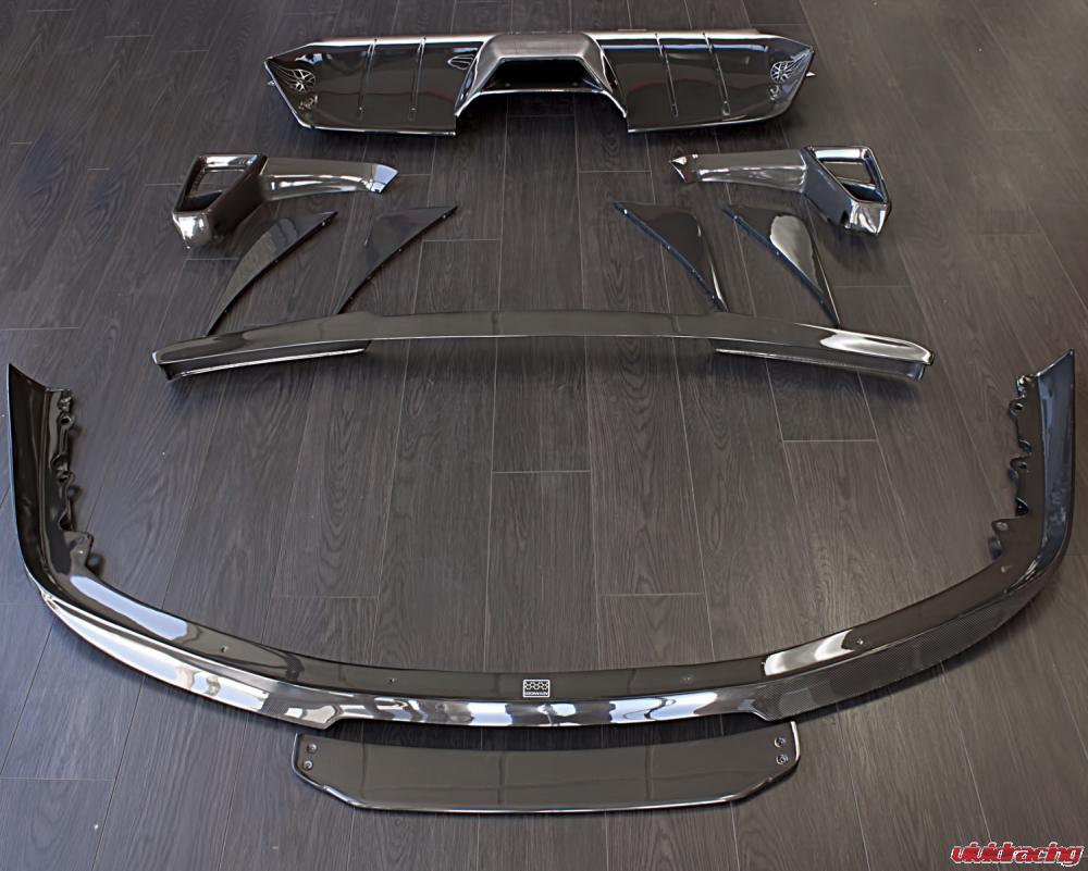 This kit includes a 2-piece front splitter, rear diffuser, diffuser fins, fog light surrounds and deck lid spoiler, all of which featuring a 1×1 glossy weave.