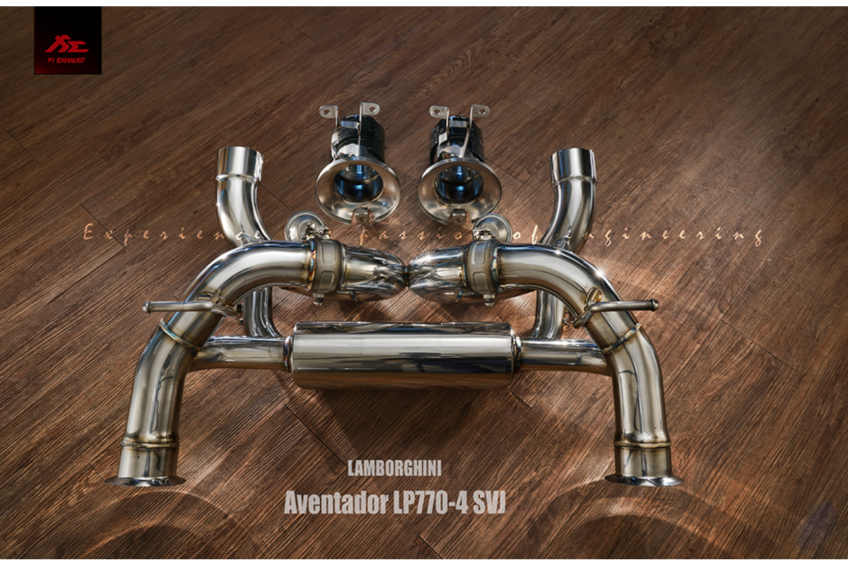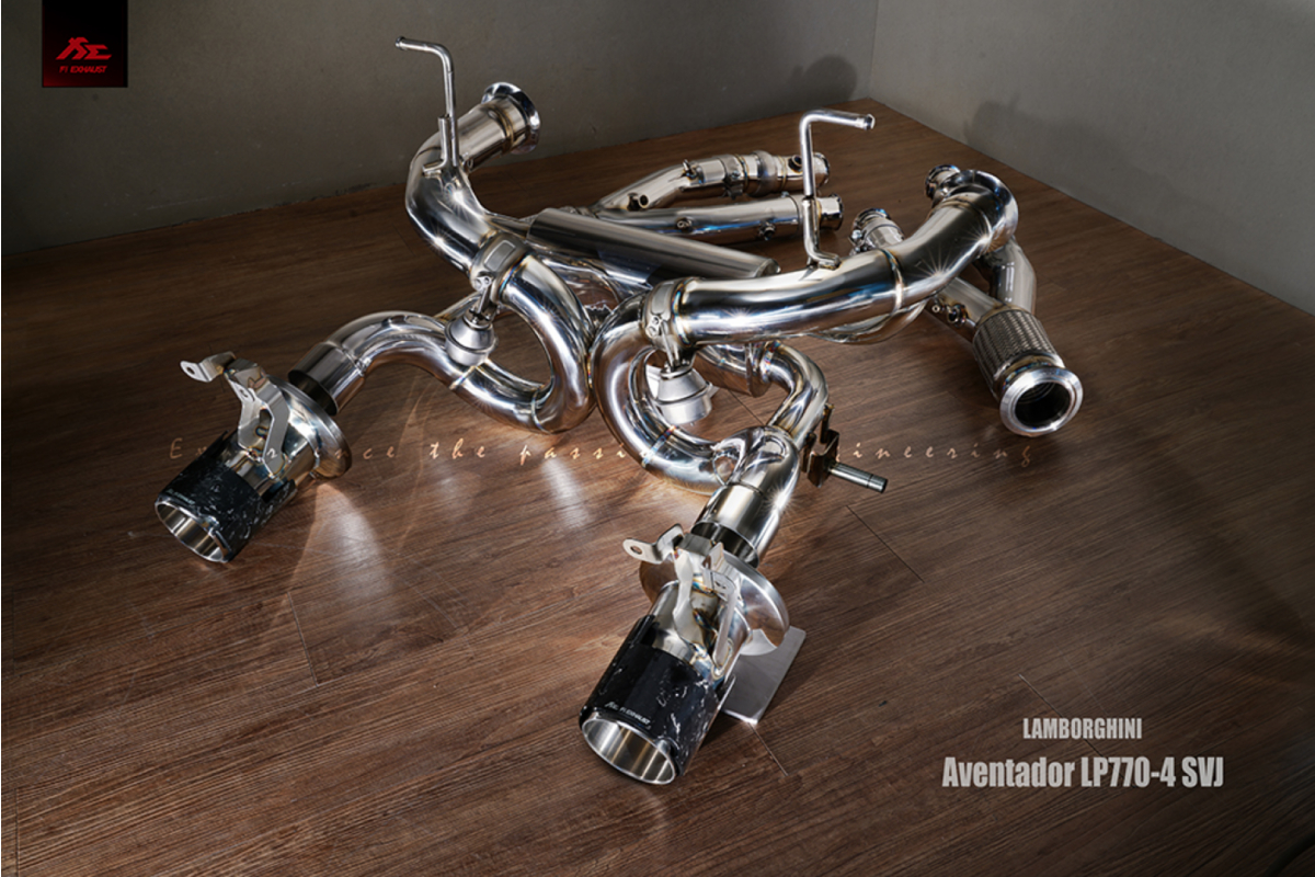 FI Exhaust is pleased to announce the availability of its Valvetronic Exhaust System for the 2018+ Lamborghini Aventador LP 770-4 SVJ. As with all FI systems, this product spotlights the brand’s cutting-edge intelligent ECU exhaust control valve, with an emphasis on the optimization of both sound and performance. If you are unfamiliar, the Valvetronic system is a variable valve system that allows the exhaust to branch into two paths. This advanced technology has been used on Ferrari and Lamborghini supercars for more than a decade.