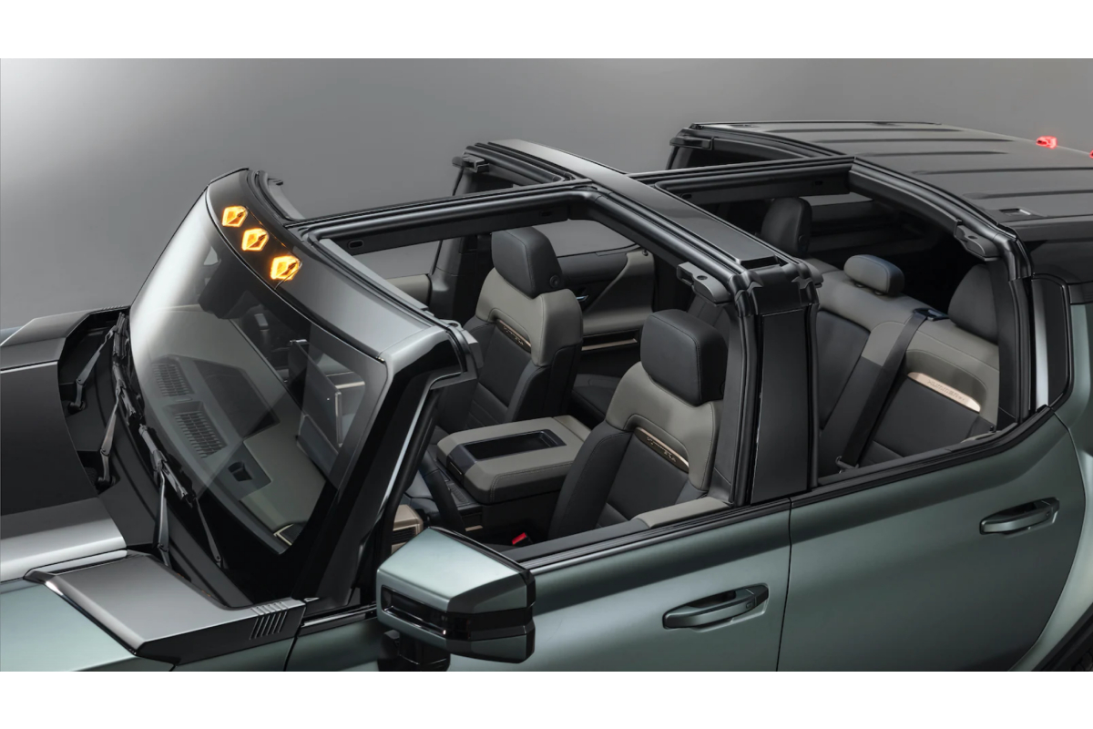 This revolutionary Hummer EV combines the significant features of the pickup with the versatility of an SUV. The SUV boasts a rugged design that includes a new rear end with a mounted full-size spare tire. The SUV is a bit shorter than the truck on which it’s based – GM cut off 20 inches in total length as well as 8.9 inches off the wheelbase. In fact, the Hummer EV SUV has a 126.7-inch wheelbase that delivers “best-in-class off-road proportions” with a tight turning circle of just 35.4 feet. According to GM, not only do these measurements give the SUV a more muscular and stubby aesthetic, but it also allows the vehicle to have more agility in the trails. Expect the SUV to be an open-roof off-roader like its pickup sibling and sized somewhere between a Tahoe and Suburban.