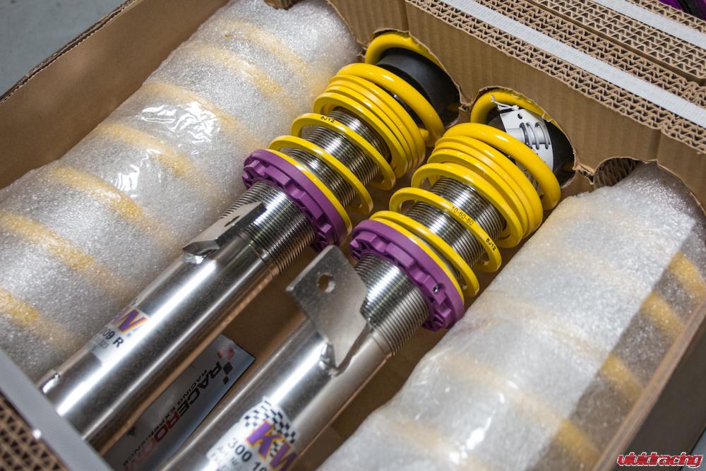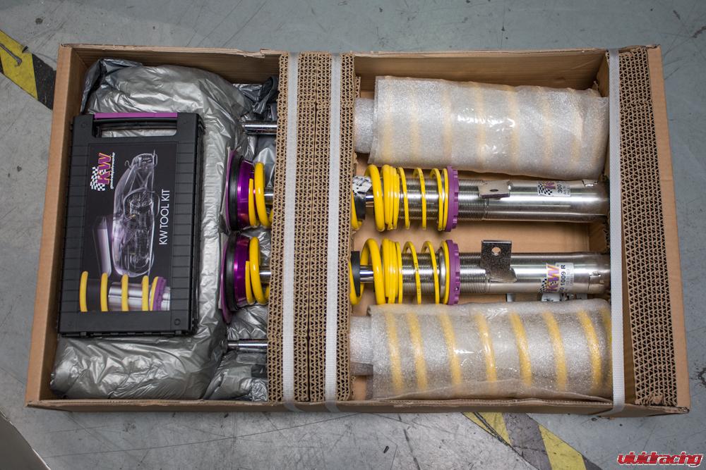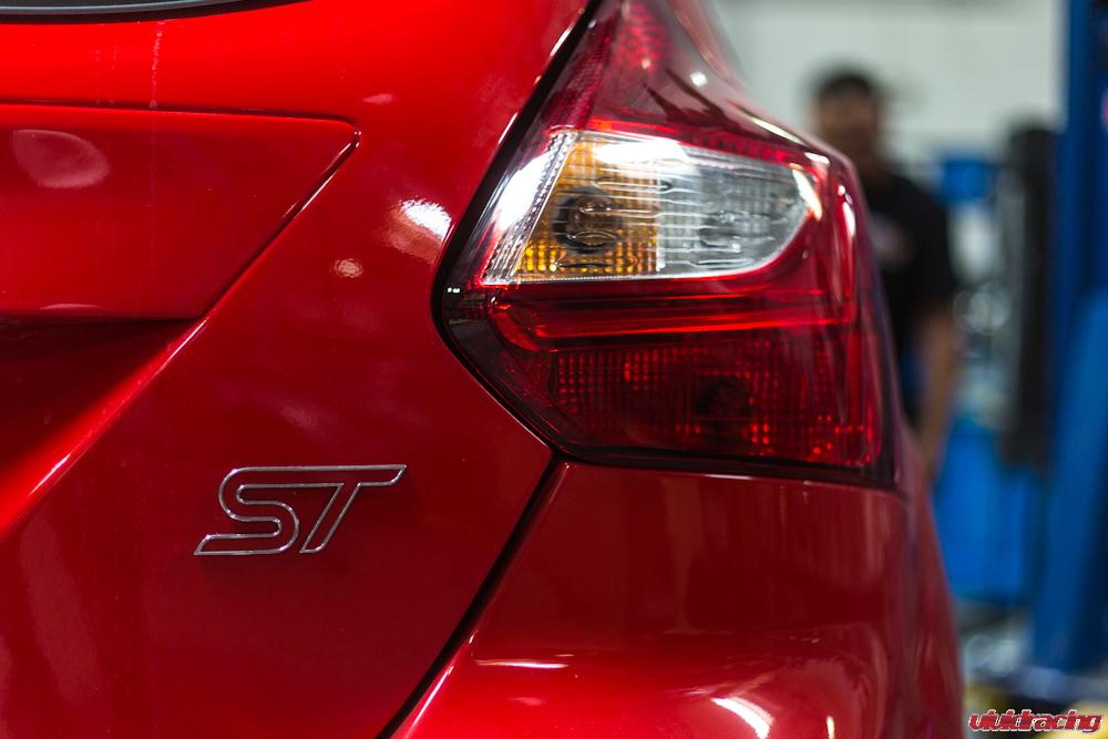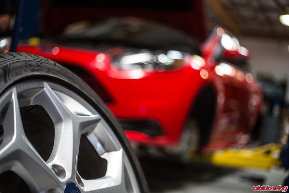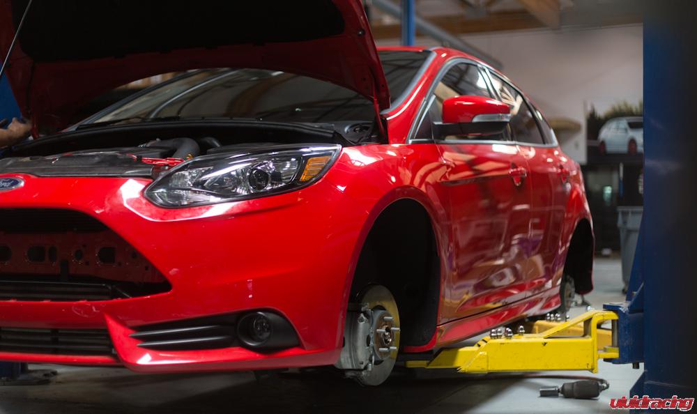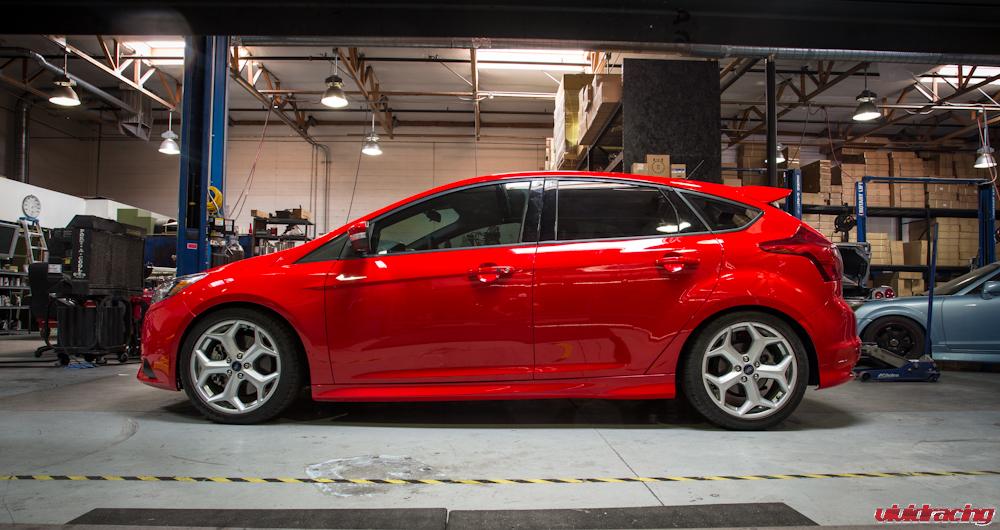 Yes, the Focus ST Project Car is back with an all new update! We have been busy going top to bottom on creating something very unique! While we wait for our new 18×10.5 wheels (wink wink), we decided to get the suspension dialed. Our preferred suspension of choice is the KW Variant 3 or in general, the KW Suspension product. Their design and function of the coilover which is built in Germany has always impressed us. Who really cares what we think though when you have 5 out of 6 years winning the 24 hour of Nurburgring race under your belt! What we do like about the KW V3 is the seperate rebound and compression adjustments. Whether we use these on our GT-R, 911 Turbo, Mercedes CLS63, or Scion FR-S, the ride is always beautiful for street, but aggressive when the car is pushed. The adjustments allow for you to fine tune how the shock reacts from compression into a bump and rebounding from a bump. Setting this to take into account driving style, vehicle use, tire choice, allows for you to have an exceptionally well balanced ride. Unlike typical coilovers which just have 1 adjustment called dampening, the ability to control either or is what makes this superior. Its not the number of clicks but what those clicks are doing.