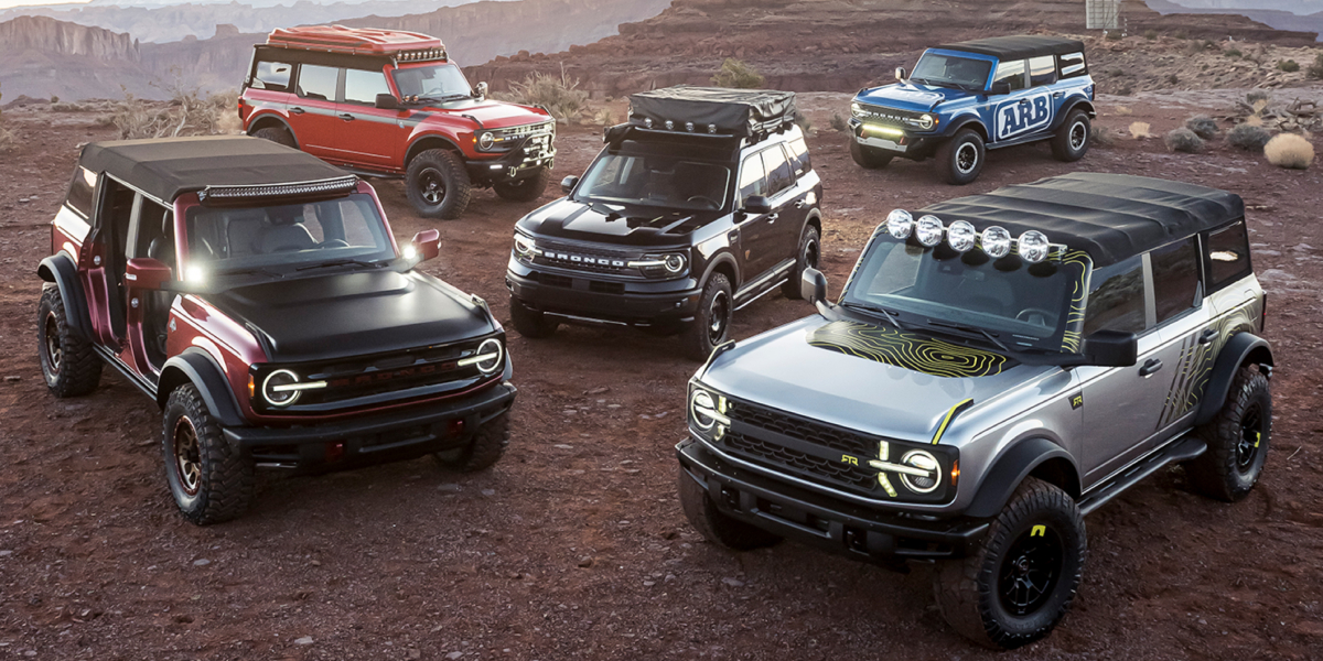 When Ford unveiled its Bronco and Bronco concepts in the summer of 2020, it was fairly evident that the brand would place a large focus on accessories for the trucks. After all, The Blue Oval offers over 200 factory-backed add-ons for the standard model and over 100 for the Sport trim right from launch. The five concept models headed to Moab, Utah will showcase a subsequent rollout of parts as Ford has teamed with aftermarket experts ARB 4×4 Accessories, RTR Vehicles, and 4 Wheel Parts to build them. Let’s take a closer look at these off-road beasts and their goodies so you can get an idea of how you can customize the Bronco.