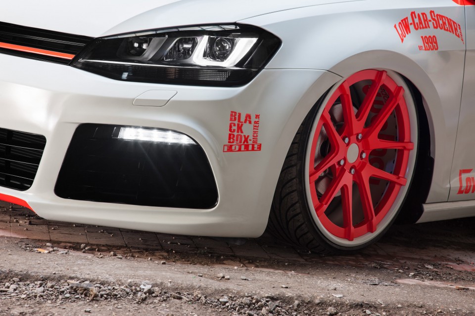 Volkswagen Golf’s have always been popular in the tuner market and they carry their own cult-like following, but with the release of the new VW Golf 7’s, we’re seeing another wave of custom Golf’s on the scene. Since we were just at SEMA, one of the things you saw a lot this year, were cars wrapped with matte color or even a custom print like Justin Bieber’s leopard Audi R8 that West Coast Customs had on display. Well, Low Car Scene and Blackbox Richter decided to take their custom wrapped Golf 7 to a whole new, futuristic, level.