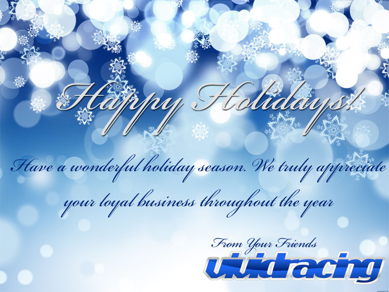 Where ever you are in the world, what ever you celebrate, there is one thing we all love, cars! Vivid Racing would like to wish you Happy Holidays and a prosperous New Year! PS, the world did not end so you can keep buying car parts! Vivid Racing Phone Sales/Support will be Closed Dec 24-25 and Jan 1.