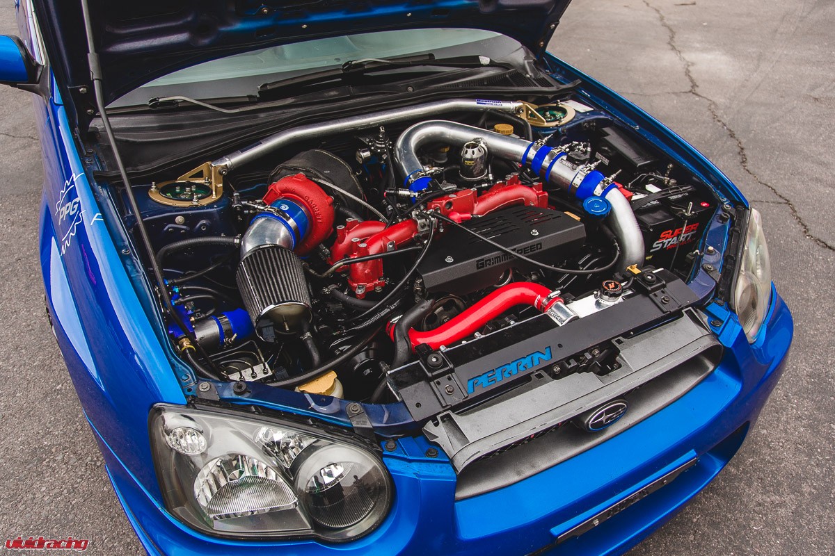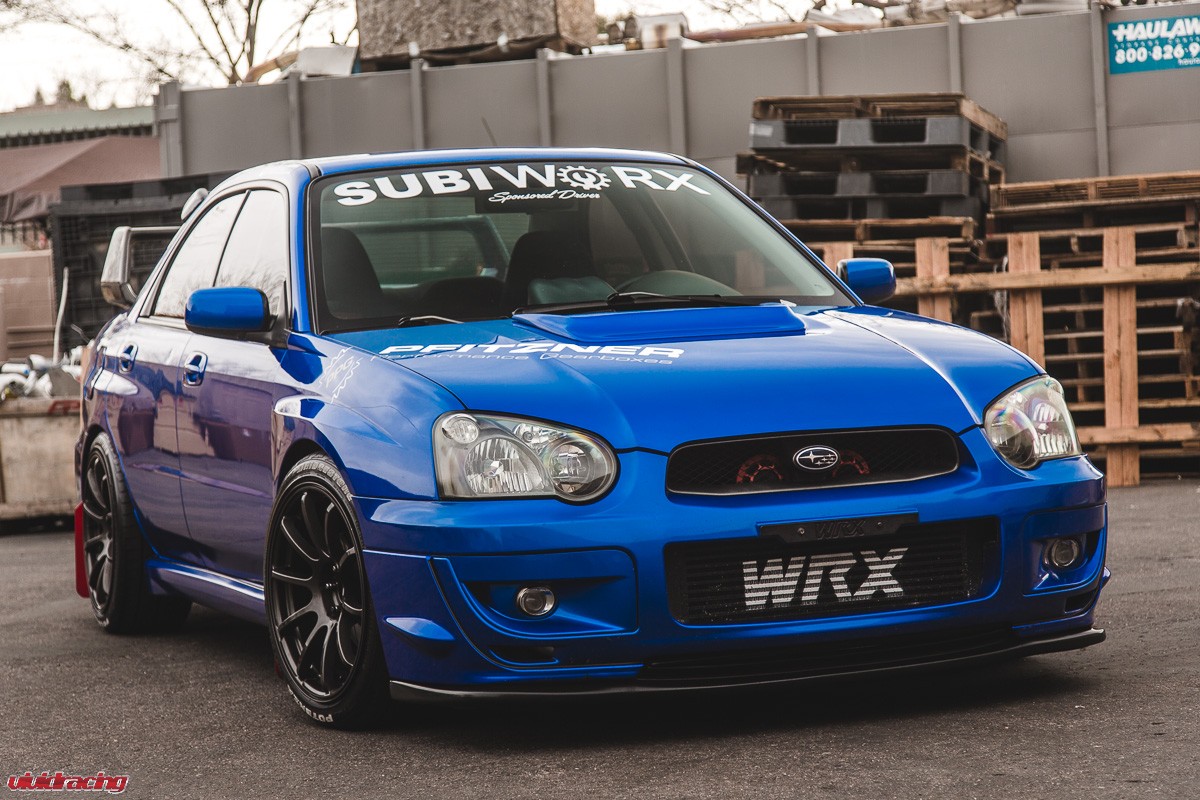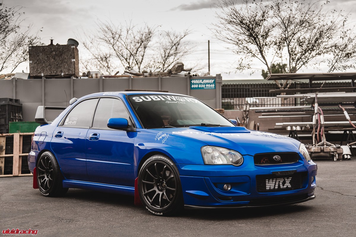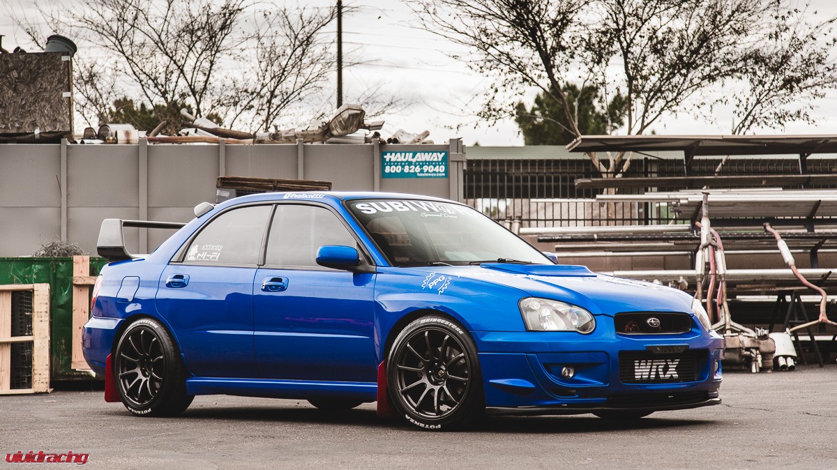 If you follow our Instagram account, I put up a short story about this incredible Marine stopping by the shop and sharing a picture of our old Subaru WRX 2004. Well here is his monster that he has worked his butt off to build. The 2004 WRX features some serious modifications. Going for 500 all wheel horsepower, he came to Vivid Racing to pick up a new carbon driveshaft to help deliver the power to the ground. Already equipped with some great parts from Perrin, Invidia, TurboXS, Grimmspeed, and more, we did a mini photoshoot in the back lot to show case this beautiful WRB Subaru. Check out the mod list below the photos and shop all 2004 Subaru WRX Parts Here.