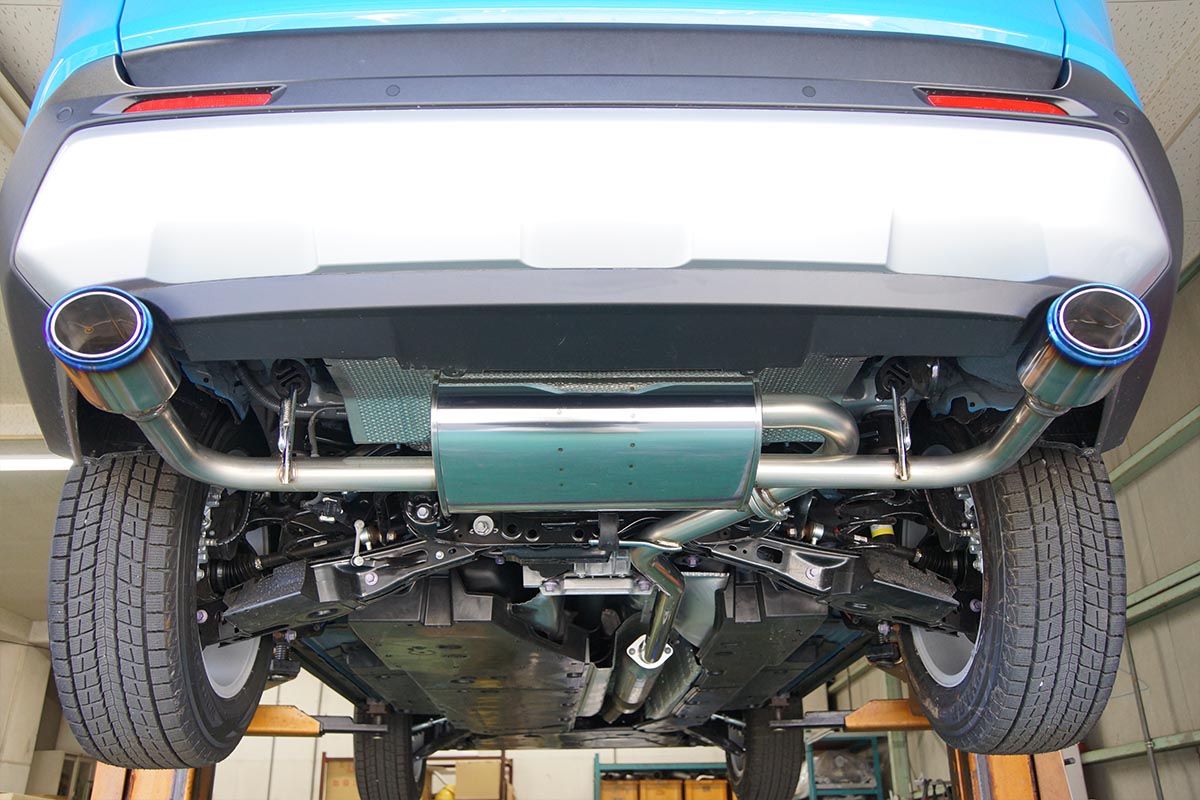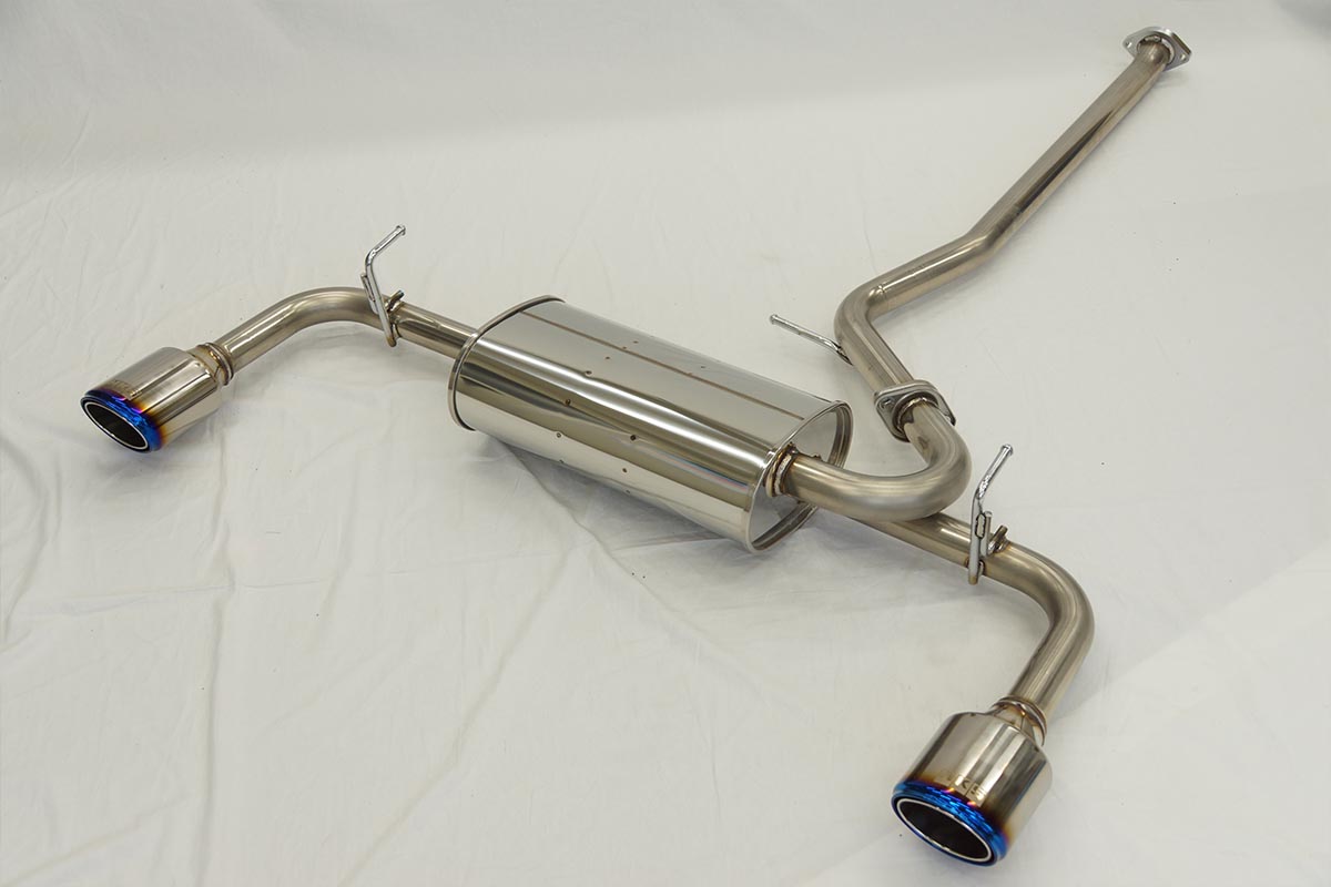 Eliminating restriction and reducing weight in the mufflers allow for a free-flowing path for the exhaust to travel through. Featuring sporty oval blue titanium tips, the HKS system bolts directly in the factory location without requiring modification. Everything needed for installation is included in the purchase of this exhaust.