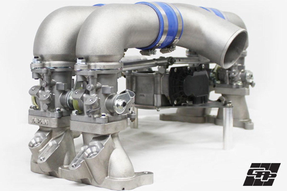 This kit includes cast aluminum intake manifolds for the left and right bank, as well as a cast aluminum intake plenum. The throttle bodies used in this kit are Genuine Toyota-Japan AE111 20V Individual Throttle Bodies with 48mm butterflies. Throttle Body Synchronizer and electronic A/F dongle for equalizing each cylinder are also included in the kit. As we mentioned above, the system utilizes the stock FA20 electronic single throttle body, through special linkages, to operate the ITBs, making installation as easy as possible. Unfortunately, not absolutely everything is included with the kit, so you will need to source some parts yourself such as the injectors and fuel rail.