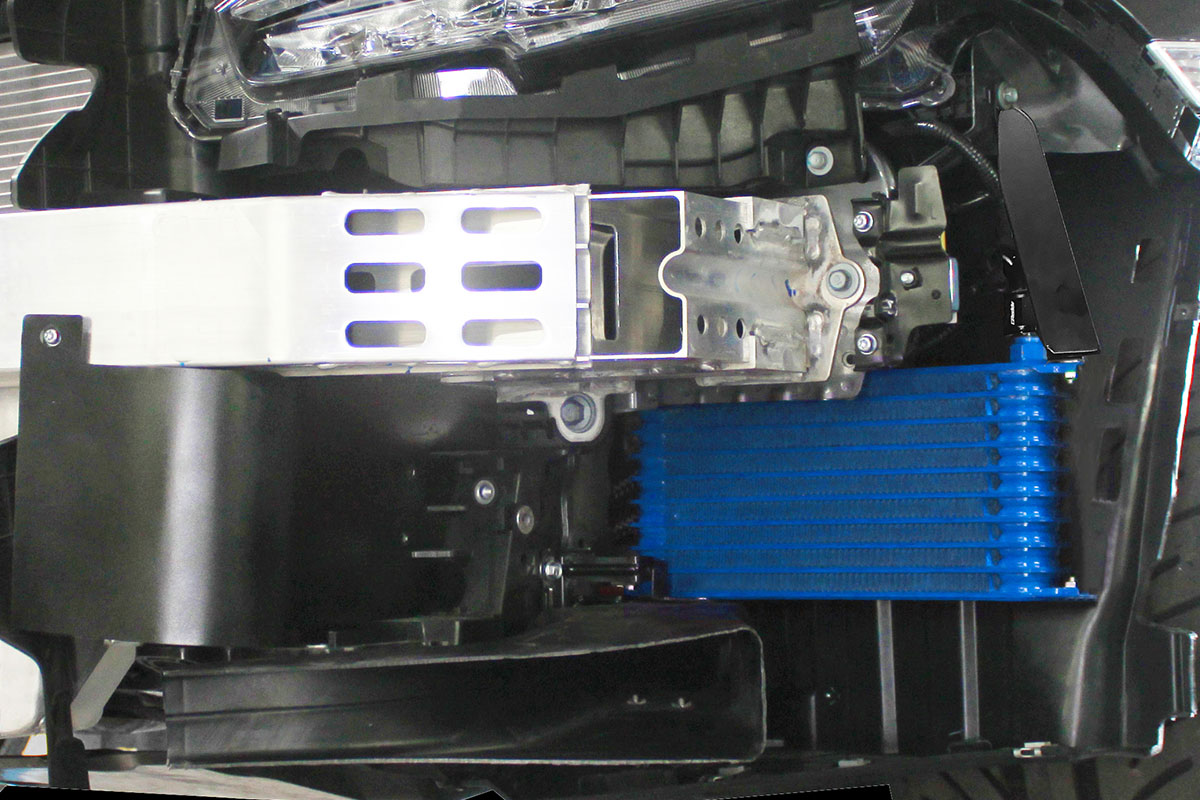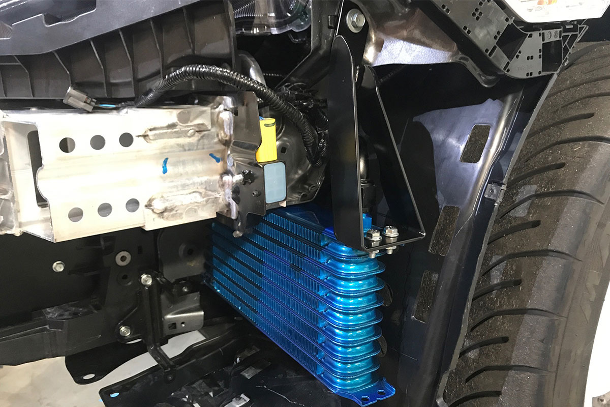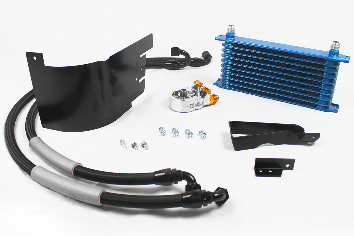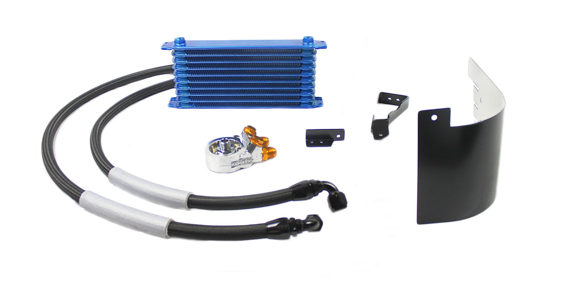This new oil cooler is designed to go in an unused area of the left part of the front bumper. By mounting it in an unused location, airflow to the radiator and intercooler will not be negatively affected. Without this oil cooler, you run the risk of the oil reaching a temperature where it can begin to lose it’s lubricity and can no longer properly lubricate the engine. The oil block has an internal thermostat to allow your oil to get up to operating temperature during cold days.