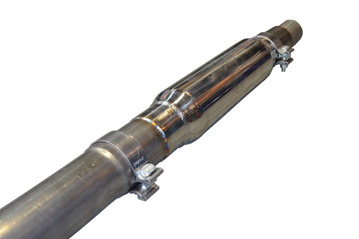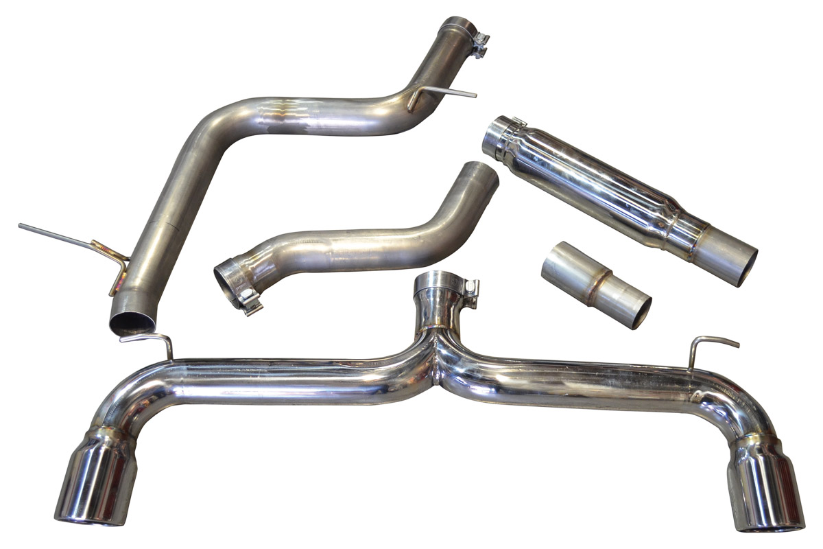 With 3” piping throughout, you’ll see performance gains of up to 14 horsepower and 18 ft-lbs. The tubing is made from Stainless Steel to keep the cost down, plus it’s extra resistant to corrosion. The system is 100% tig-welded for extra strength. All the way out back are two 4” stainless steel polished tips.