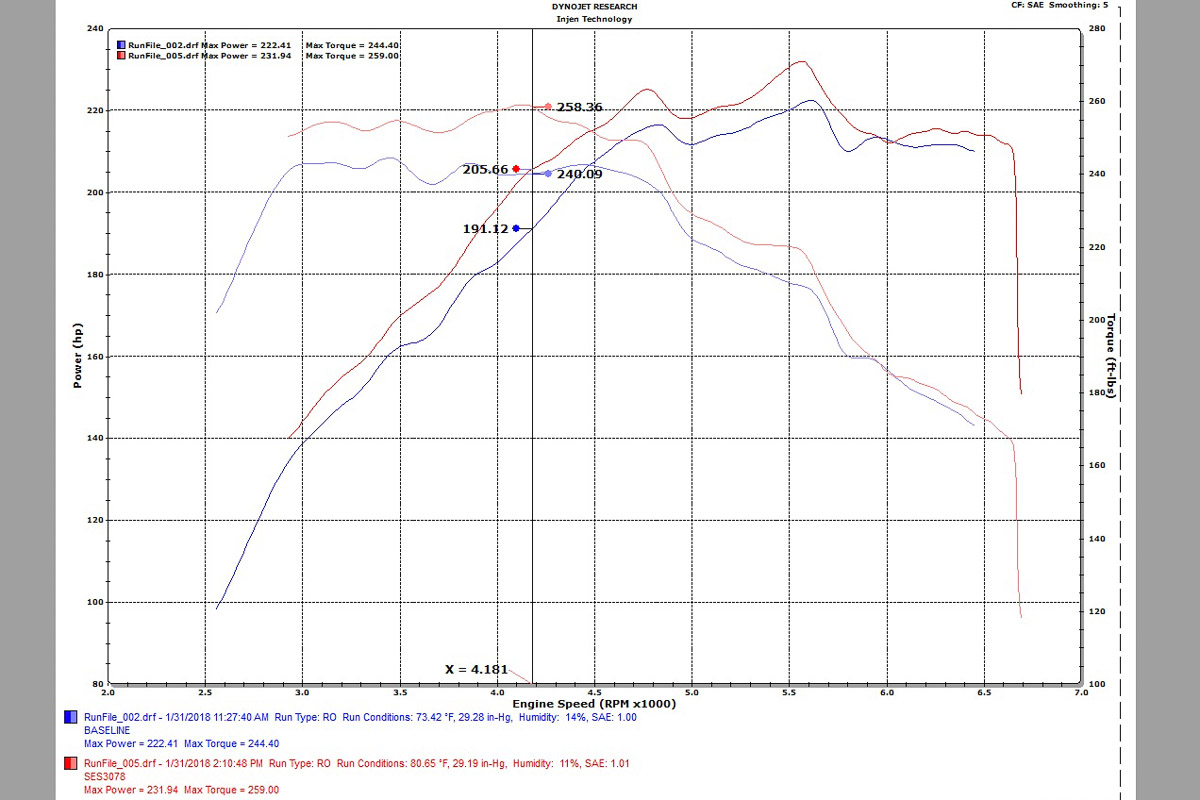 - Increases horsepower and torque without a tune