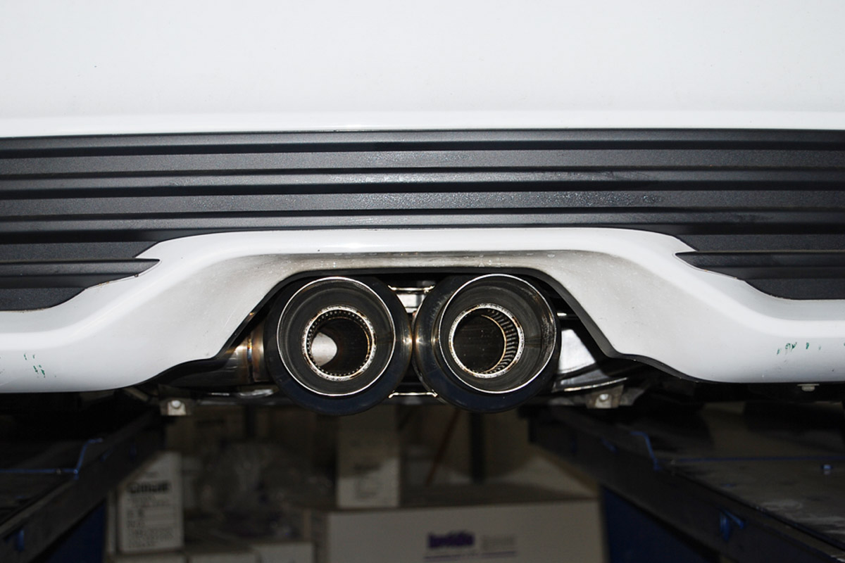The new catbacks are available in two versions: N1 and Q300. They both use 76mm piping with burnt titanium tips. The biggest difference between these two exhausts are the mufflers which use different designs. The N1 system has a very aggressive tone and might be a little too loud for some people. The Q300 is also aggressive sounding but is toned down compared to the N1 which makes it more appealing for someone who doesn’t want a super loud exhaust.