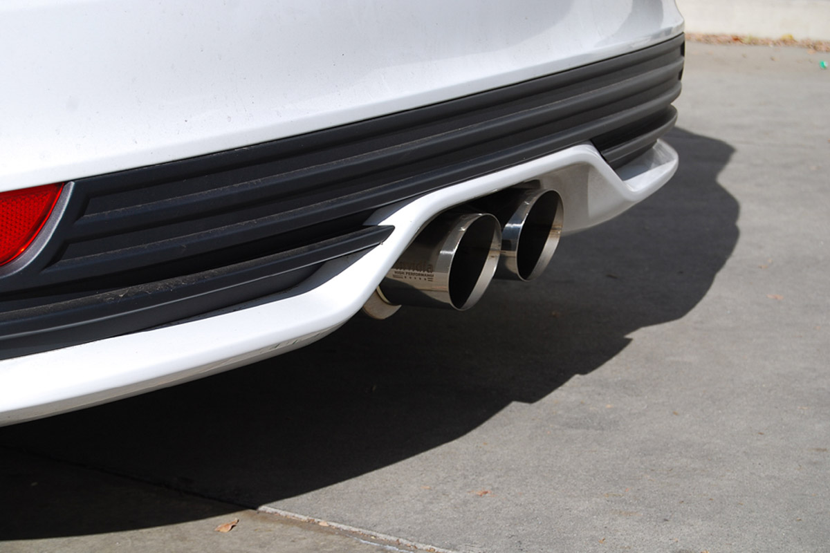 The new catbacks are available in two versions: N1 and Q300. They both use 76mm piping with burnt titanium tips. The biggest difference between these two exhausts are the mufflers which use different designs. The N1 system has a very aggressive tone and might be a little too loud for some people. The Q300 is also aggressive sounding but is toned down compared to the N1 which makes it more appealing for someone who doesn’t want a super loud exhaust.