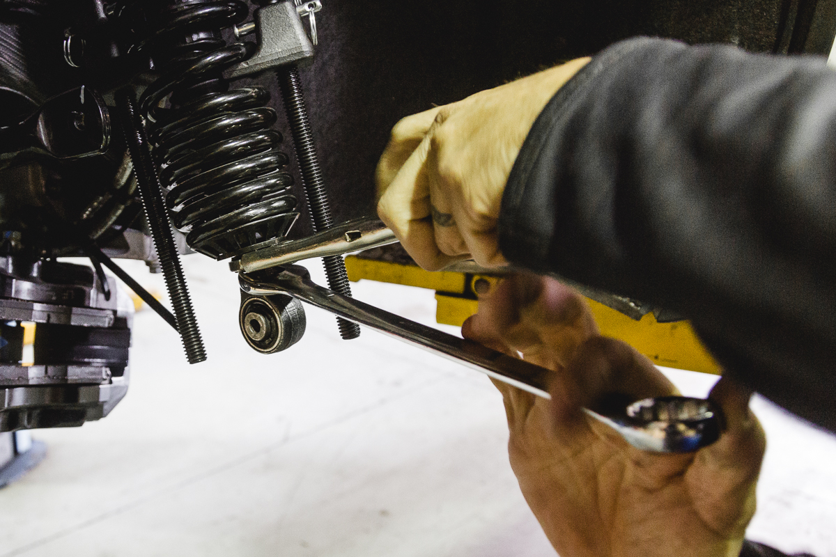 Reinstall the rear shock and spring back into the vehicle. Always refer to your vehicle service manual for torque specifications.