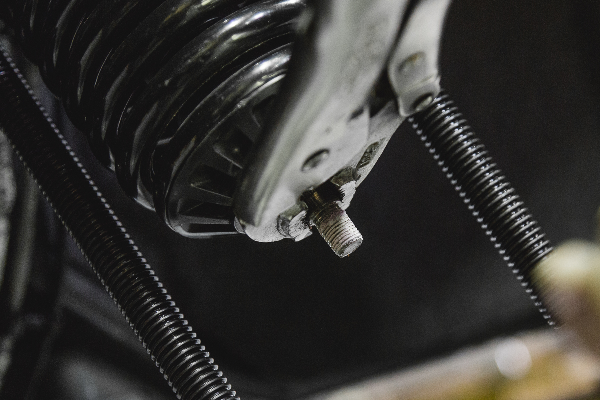 While holding the vice grips on the shock shaft, use a wrench or long extension through the shock mount to unthread the mount from the shaft. Since a thread locking compound is used from the factory, extreme force will be required to break free. Make sure your vice grips are tightened down extremely tight so it doesn’t spin on the shaft. (You will need to use red thread locker when reinstalling this mount)