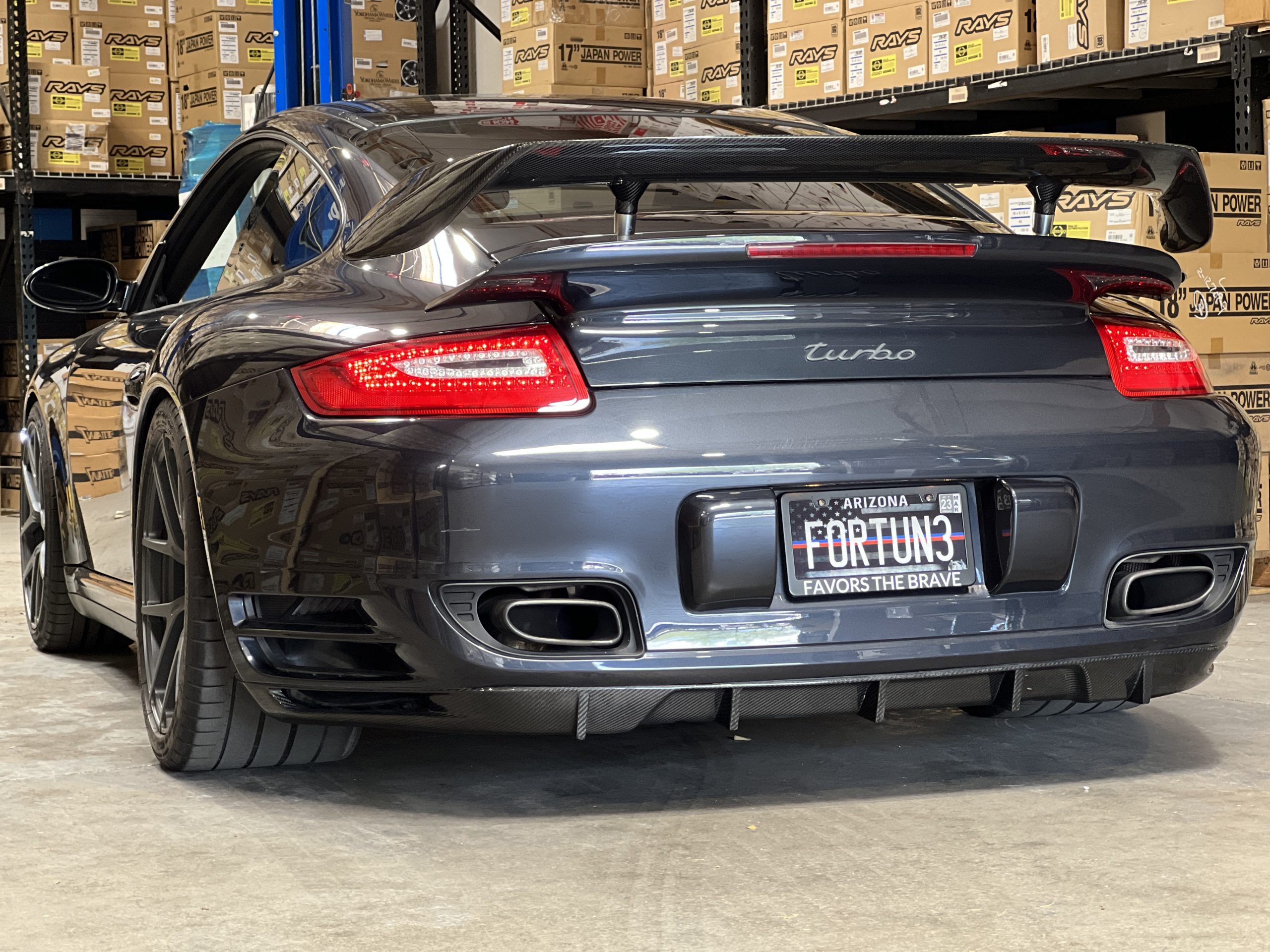 We recently installed VR Aero carbon fiber parts on a 2007 Porsche 997 Turbo, and we have a detailed step by step video of how we did it, and the after installation photos below. We chose a VR Aero kit not because it is our brand, but because VR Aero offers some of the most durable and functional aerodynamic products that improve your car’s performance while elevating your ride’s aesthetics. The VR Aero carbon fiber kit is the perfect fit for 2007-2009 Porsche 997 TT/GT2, and 2010-2013 Porsche 997.2 Turbo, and the kit includes;
