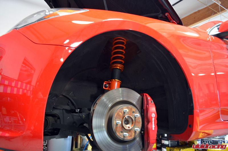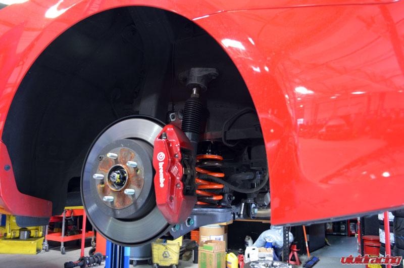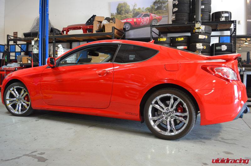 A local customer came to the Vivid Racing Service Department in Gilbert, Arizona to get his Genesis a bit lower. As we always say, stock ride height and stock wheels have got to go on any vehicle. So with this red Hyundai turbo, we started with the ride height. As you can see from the before picture, it was ready to go offroad. Installing a set of ARK Performance coilovers we were able to give the car a lower stance and help the customer with improved handling. The ARK Performance coilovers feature multi-way adjustable dampening along with adjustable ride height. Check out the install photos and view more Hyundai Genesis Parts here.