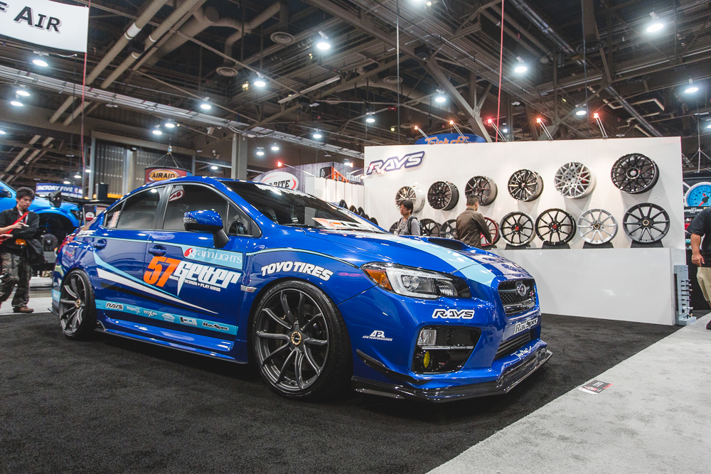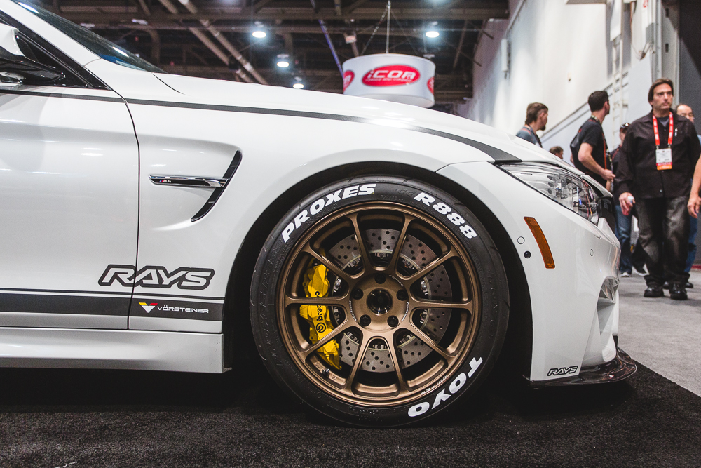 Did you go to SEMA this year and see all the craziness?  Well to see the full show you really need a week if your body can take it.  But in between the lookieloos and iPhone picture takers, there is not a lot of GREAT photos to really show what certain top level companies were offering.  So if you were not at the show or the week was a blur, here is the start of our SEMA 2014 recap series.  With bodyguards in place, we pushed people out of the way to get these beautiful product shots of all the new Rays, Volk Racing, Advan, Gram Lights wheels from USA distributor Mackin Industries.  Inside their booth featured an amazing Lexus RC-F, a Nissan GT-R, and the brand new 2015 Subaru STI.  The new BMW M4 stood proud too with as set of gold wheels and a Vorsteiner aero kit.  The winner of that booth was the Evasive GT-R with the Advan Model GT blue wheels.  They were the perfect offset and size to fit out that GT-R.  Some of the new Gram Lights wheels with sudo looking centerlocks should be a big hit this coming year.  We tend to expect uniqueness and cutting edge from Rays but their Rotiformesq wheel is not doing it for me.  Thats been done so lets move past it.  But they did kill it with the Rays Homura wheel.  Enjoy the photos and support the cause by shopping for all your Volk Racing, Rays Wheels, Advan Wheels, and Gram Lights Wheels here.