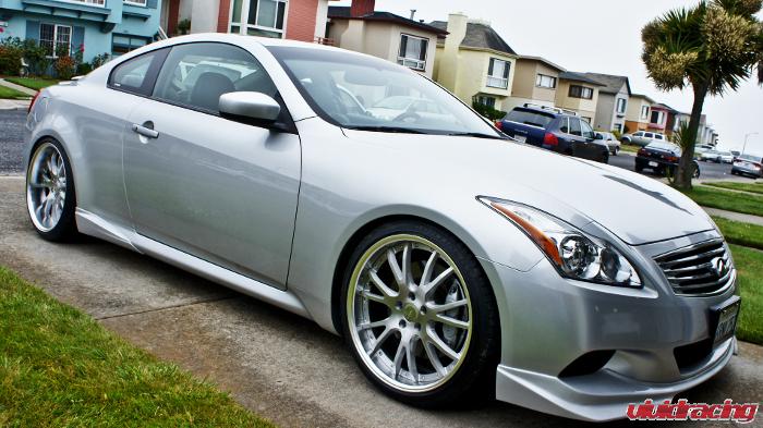 One of our online customers just shot us these photos of his Infiniti G37 coupe which he modded up very clean. The car features the full JP Aero Kit which includes front and rear spoilers and side skirts. He has lowered the car with a set of Tein STech springs and then touched it off with a set of Work GNosis GS4 wheels. Got a sick ride that is equipped with parts from Vivid Racing? Submit yours here!