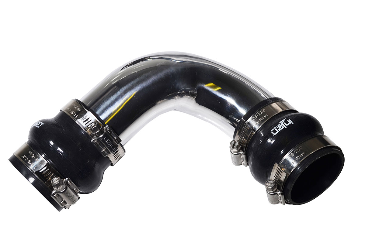 The whole point of aftermarket intercooler piping is to allow the air to move more freely, which ultimately helps more of it get into the engine and make more horsepower. This specific kit uses 2.5” piping for the hot and cold side with reinforced silicone couplers. With these reinforced couplers combined with high-quality stainless steel band clamps, the chance of a charge pipe popping off is less likely, leaving you worry-free during those hard drives.