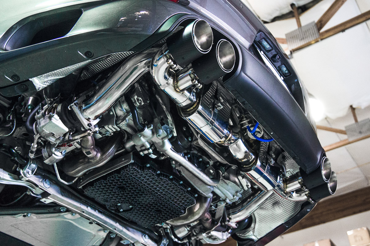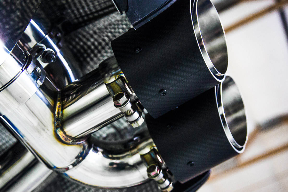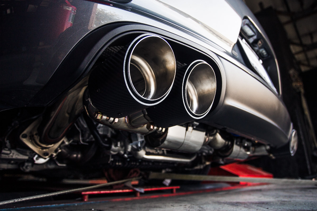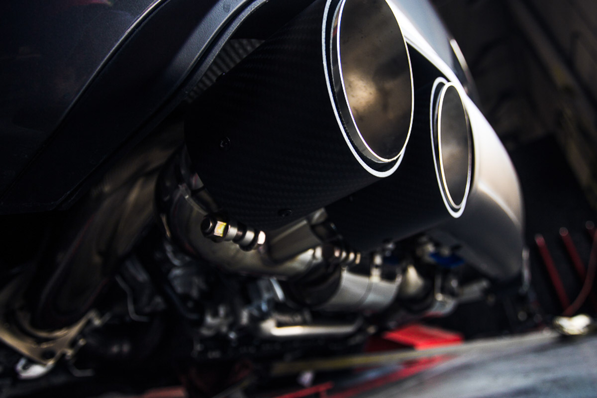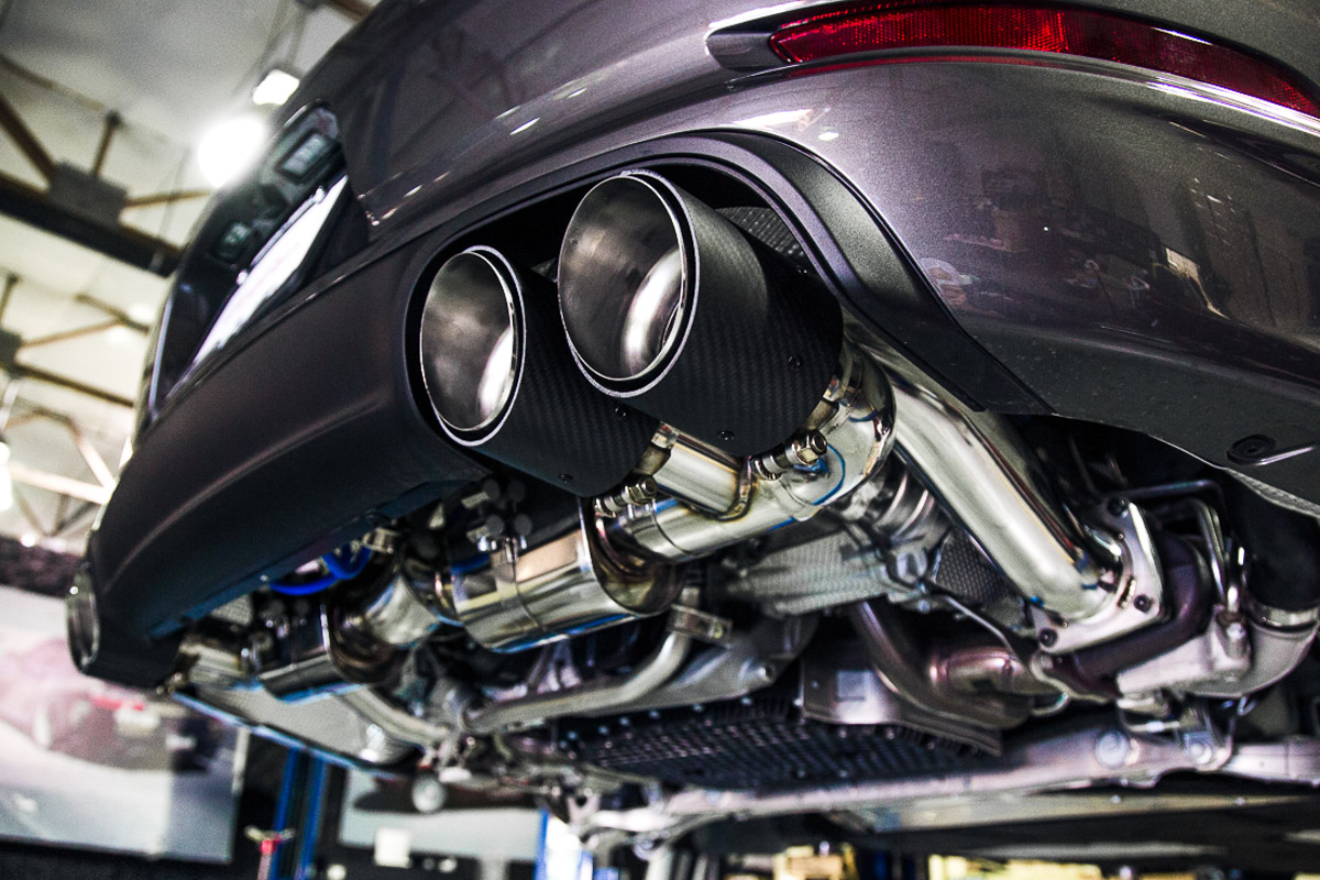 The big benefit of a Valvetronic exhaust is the ability to change the volume of your exhaust on the fly. This means you can keep your 991.2 Carrera quiet during those early mornings, late nights, and long commutes, but when you hit a canyon road you can open up the exhaust and let your Carrera sing. The exhaust is made from 3” T304 stainless-steel for a long-lasting finish, and TIG welded for the highest possible build quality. The increased diameter helps exhaust gases flow faster and more freely, allowing the turbochargers to spool up faster and create more boost, resulting in better throttle response and gains of 15-20 horsepower, as tested on the Vivid Racing AWD Mustang dyno. The tips will be available in black, polished, and carbon fiber finishes, all of which look killer on the Carrera.