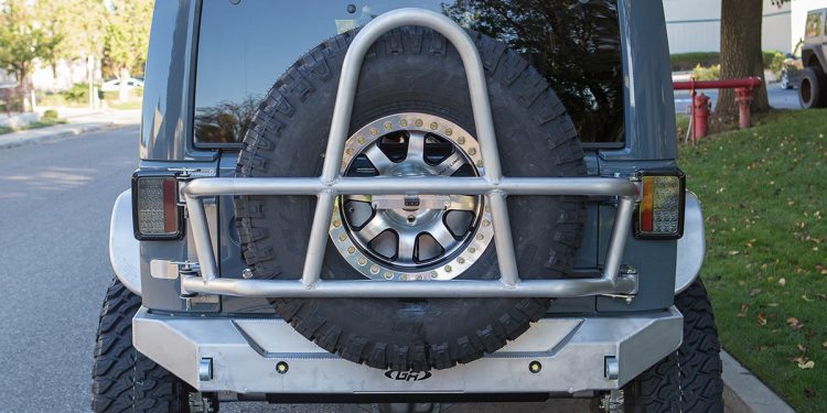 The new tire carrier is the largest and coolest of these three new parts. Rather than being built from heavy steel tubing, it’s built from 6061-T6 aluminum tubing, which saves a huge amount of weight. Considering how often you will be moving the tire carrier to access the trunk, making it as easy as possible to open is important. With a four-point polyurethane mounting system, this tire carrier is rattle-free and super easy to open. Being completely independent of the rear bumper allows you to pick the rear bumper you’ve always wanted.