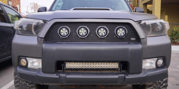 Many off-roaders like to mount their LED light bars on the roof of their 4Runners, but this can create windshield glare. To avoid windshield glare, you can mount your LED light bars farther down, either in the grill or on the bumper. This is where the new Grillcraft XE-Series lighting system comes into play. This kit replaces the factory 4Runner grill with a Grillcraft grill that mounts four small LED light pods. Not only does this look awesome, but it provides a simple way to mount lights on the front of your 4Runner. As you can imagine, this kit is WAY brighter than the OEM headlights on your 4Runner, providing you with enough light to play in the desert all night without any worries.