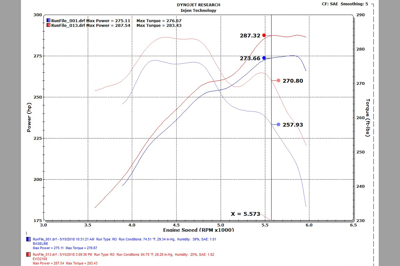 As we mentioned above, this intake used a box to protect the filter from hot air under the hood. The box is made from roto-molded plastic. The box itself keeps hot air out, while also drawing in cold air from the grill area. By using rotomolded plastic, less heat is transferred to the inside of the box. The intake tube is made of the same type of plastic which results in less heat transferred. This all adds up to lower intake air temperatures, which results in denser air, and when combined with more fuel it will result in more power. The massive SuperNanao-Web air filter provides a larger surface area for air to flow through which reduces restriction, further improving power.