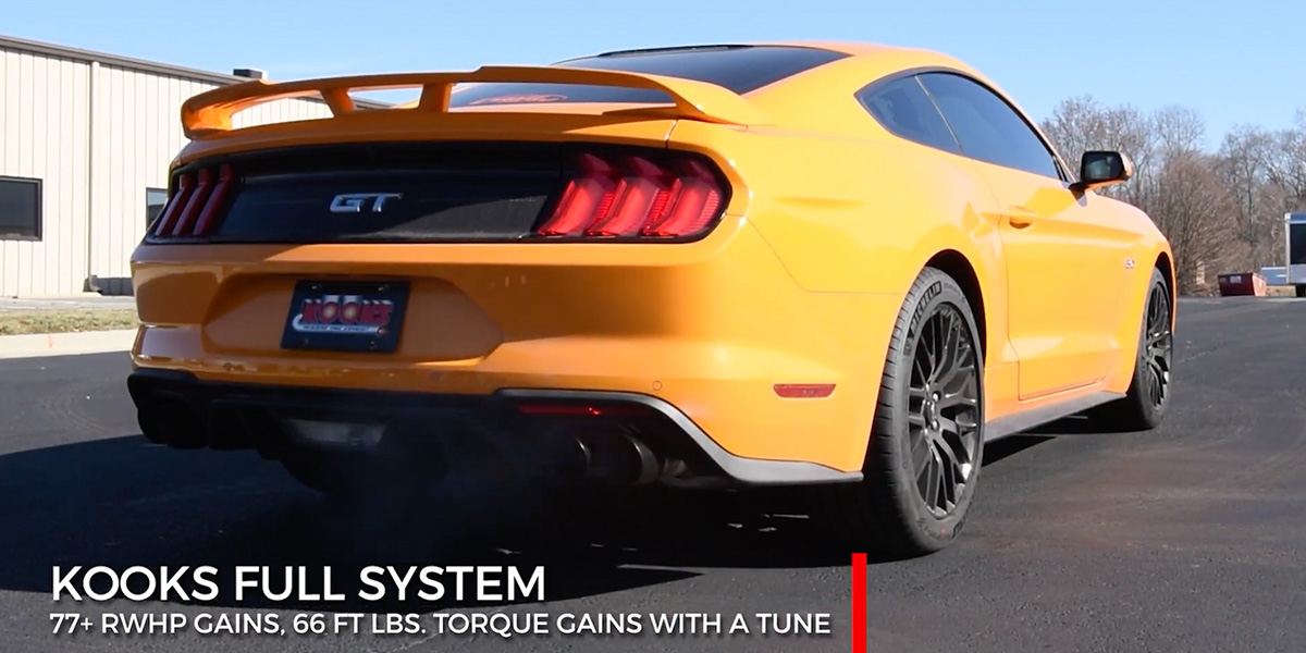 The redesigned headers are slightly different than before, allowing them to work properly with the 2018 GT. The headers now include O2 extensions for all specific years. The catback system and axle back system have also been updated with the quad exhaust tips for the 2018 GT. As tested by Kooks, their full exhaust system combined with a tune added an absolutely insane 77rwhp and 66ft-lbs of torque to the 2018 GT. Not only will your Mustang sound absolutely amazing, but that massive increase in horsepower translates to much faster times at the track. Be sure to check out the sound clips below!
